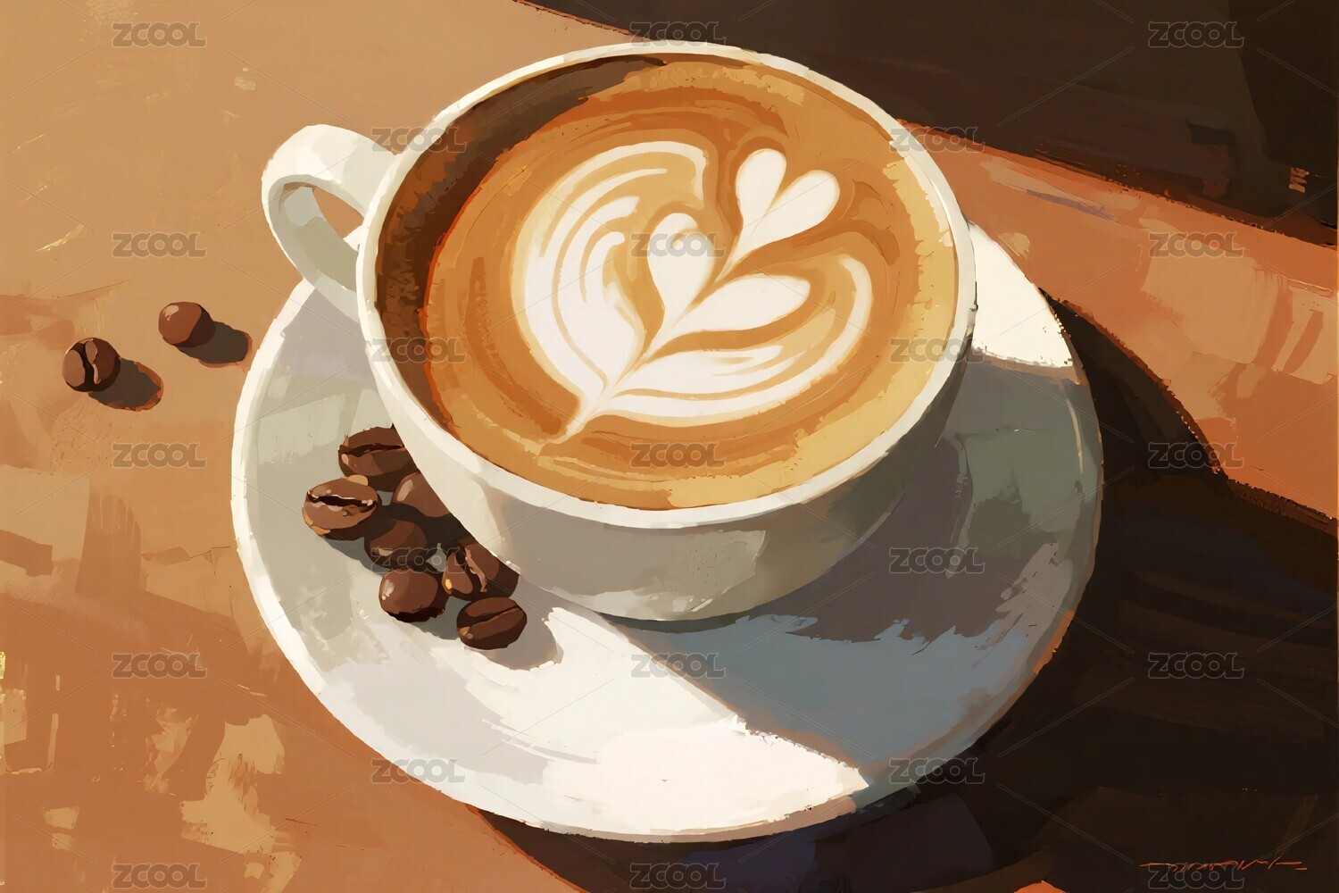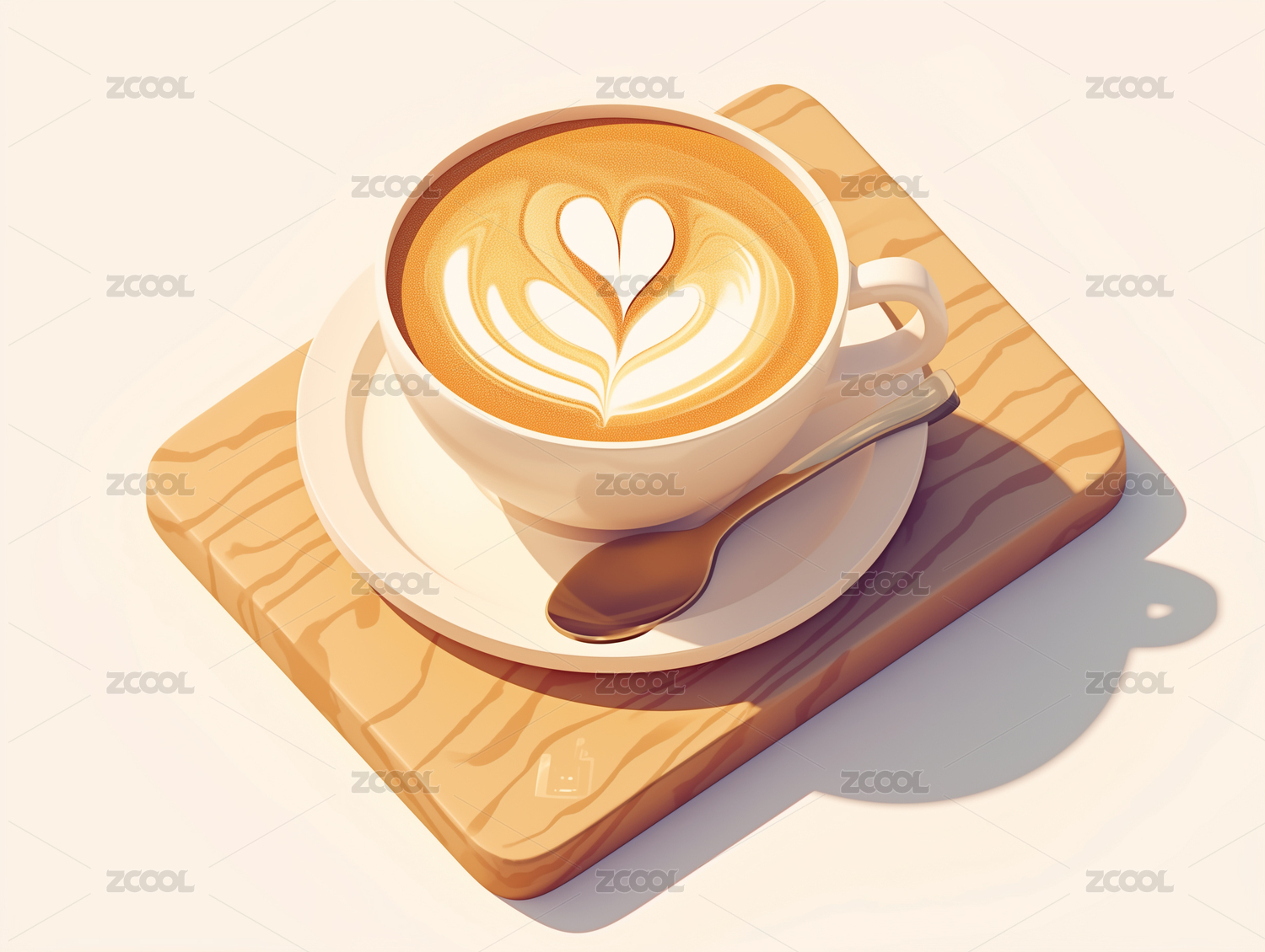 清新明亮一杯拉花浓稠牛奶咖啡饮料