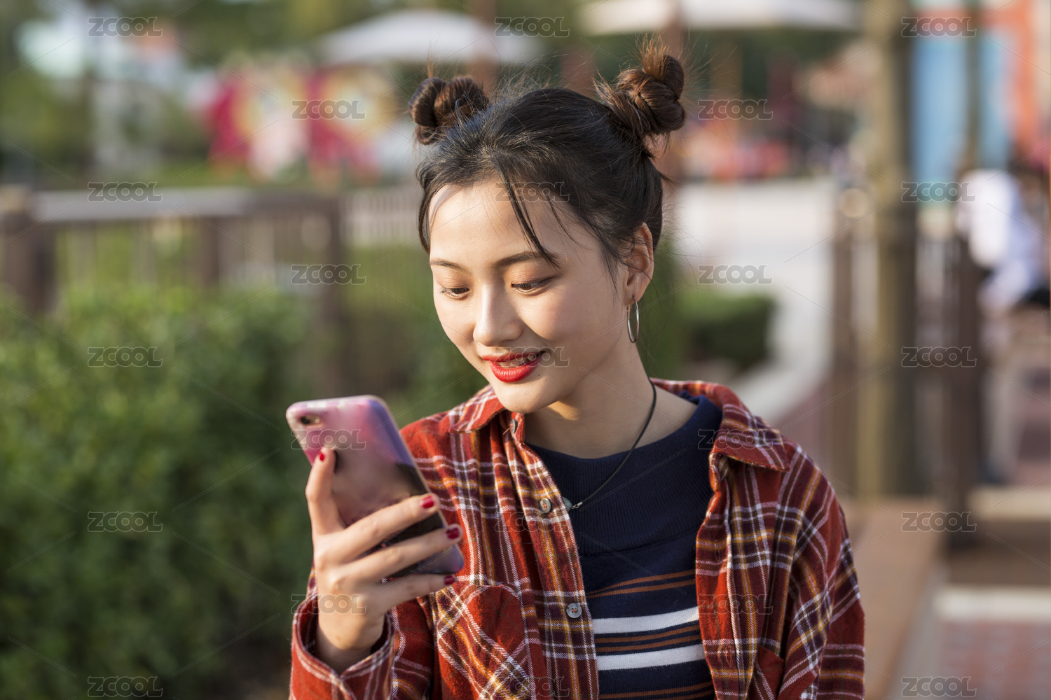 中国美女在泰国甲米的兰塔岛用手机拍照