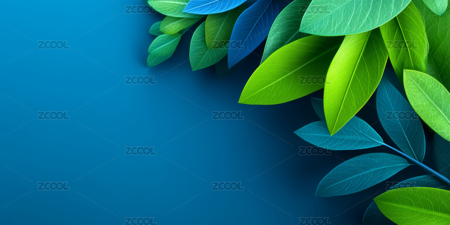 半透明叶子排列在蓝色背景上