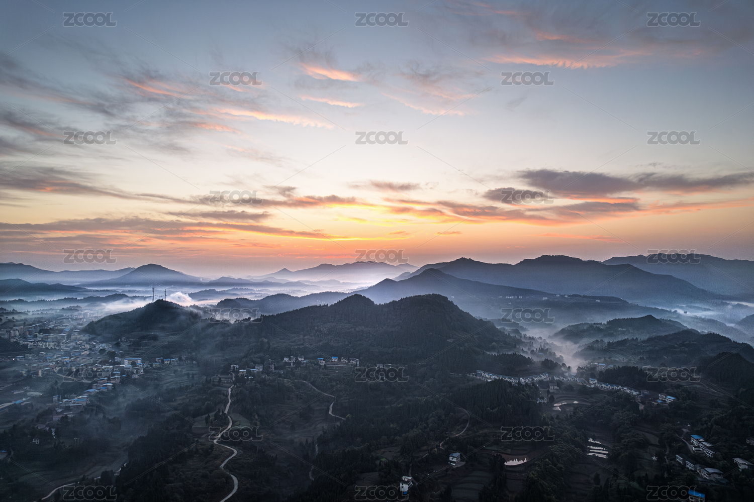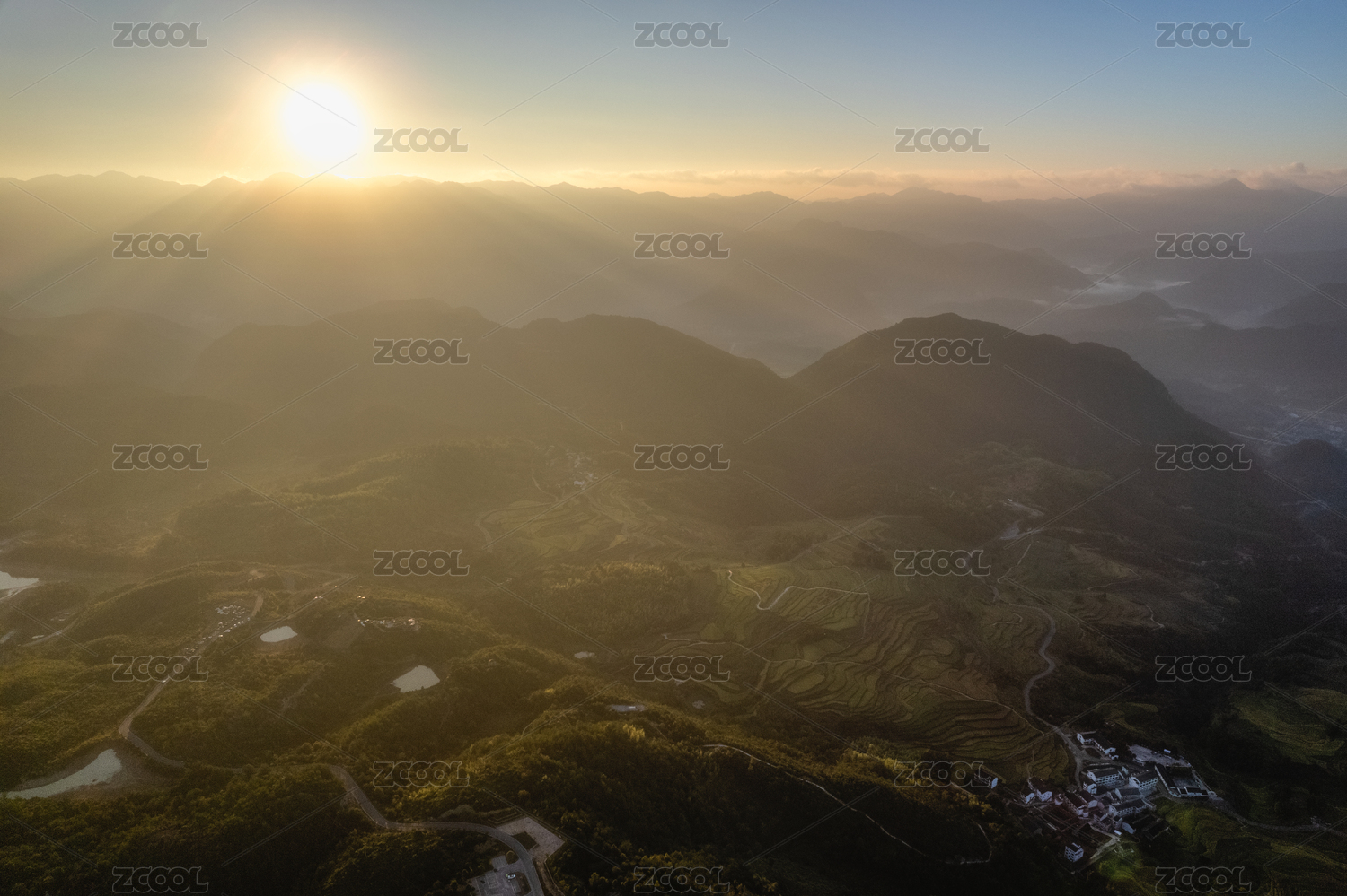 梯田,日出,雾,自然美,无人,户外,天空,山,云,地形