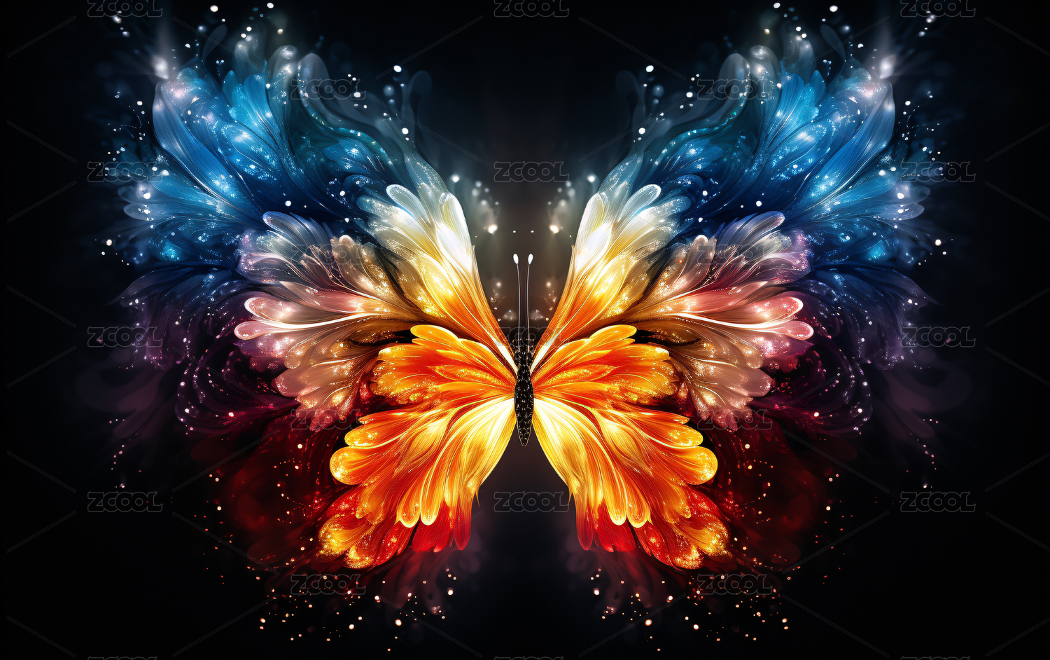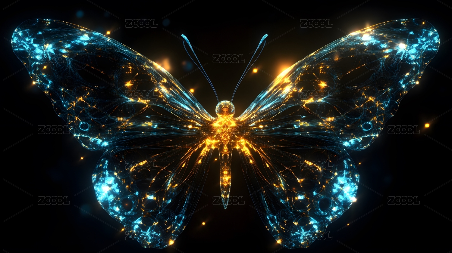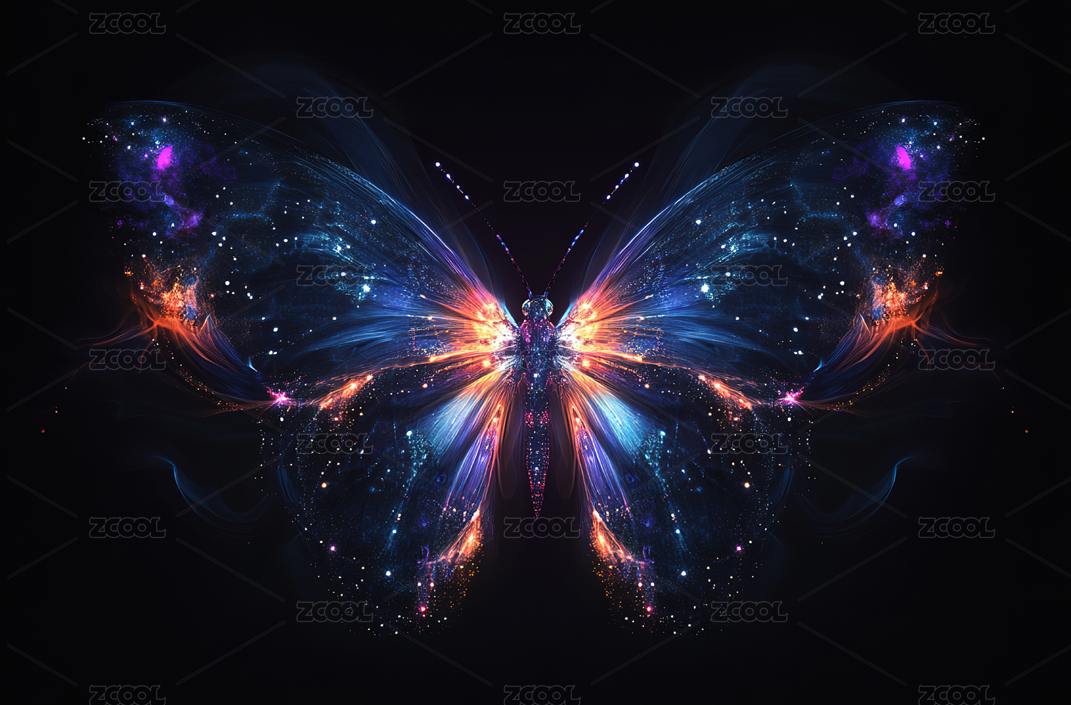 黑色背景的现代光效科技感3D彩色蝴蝶