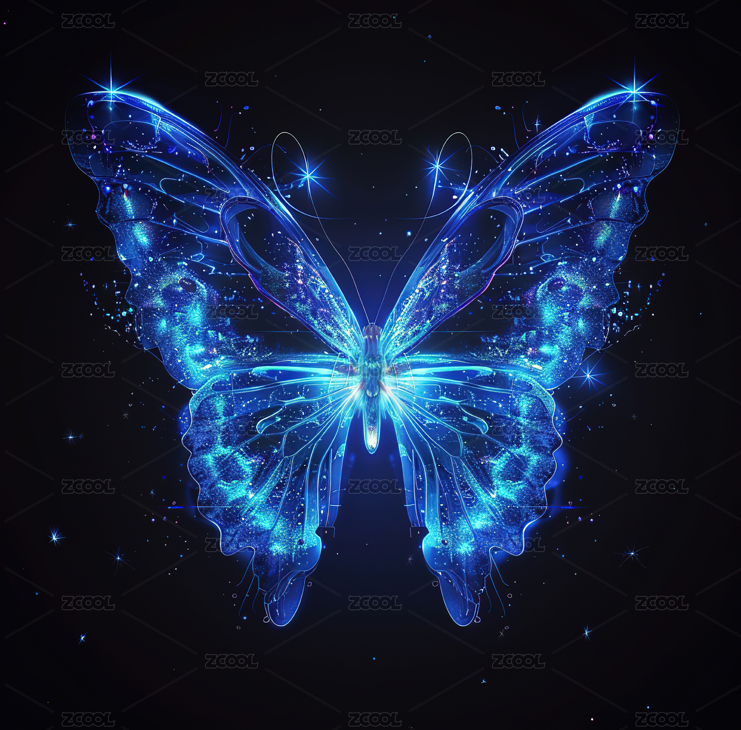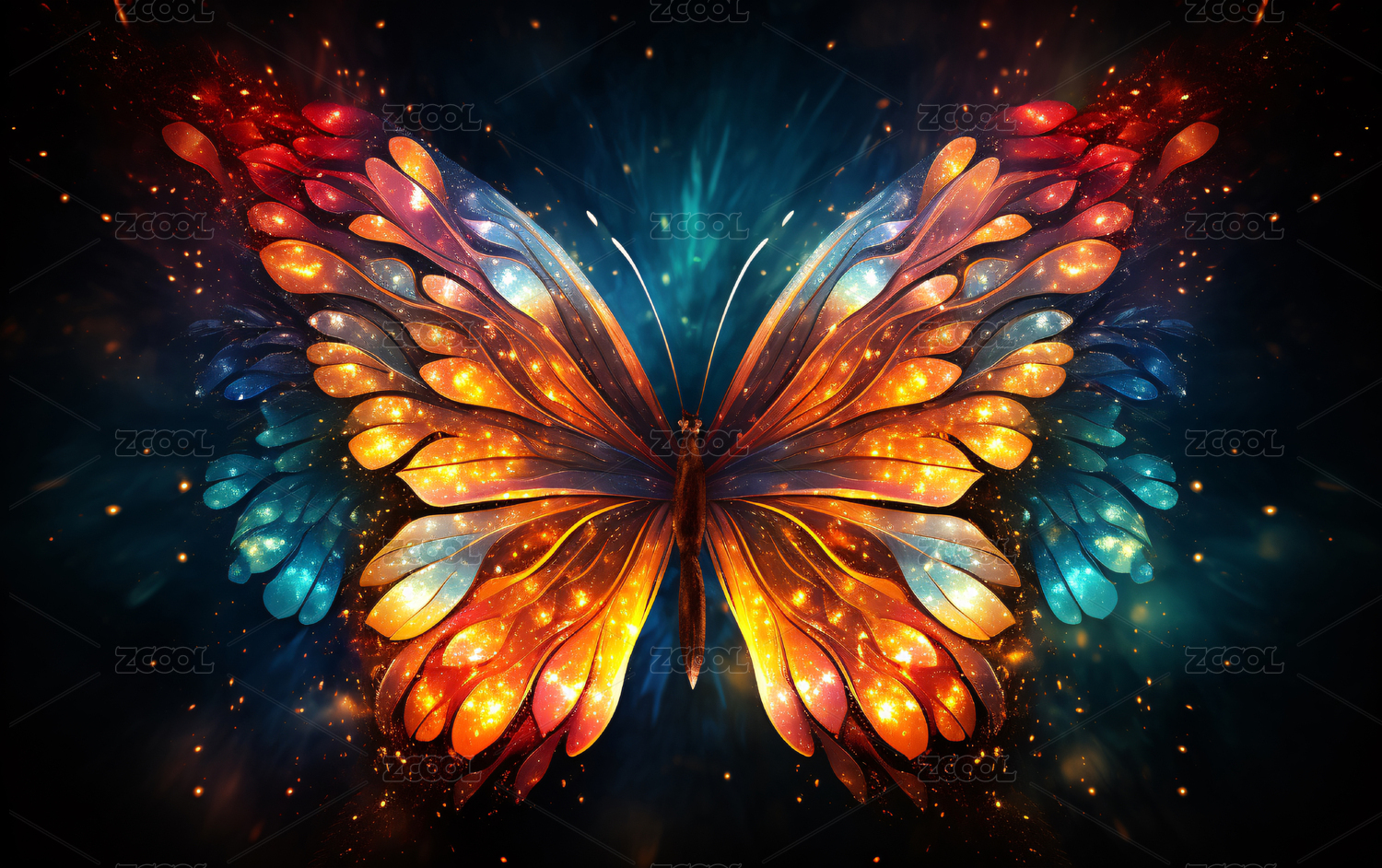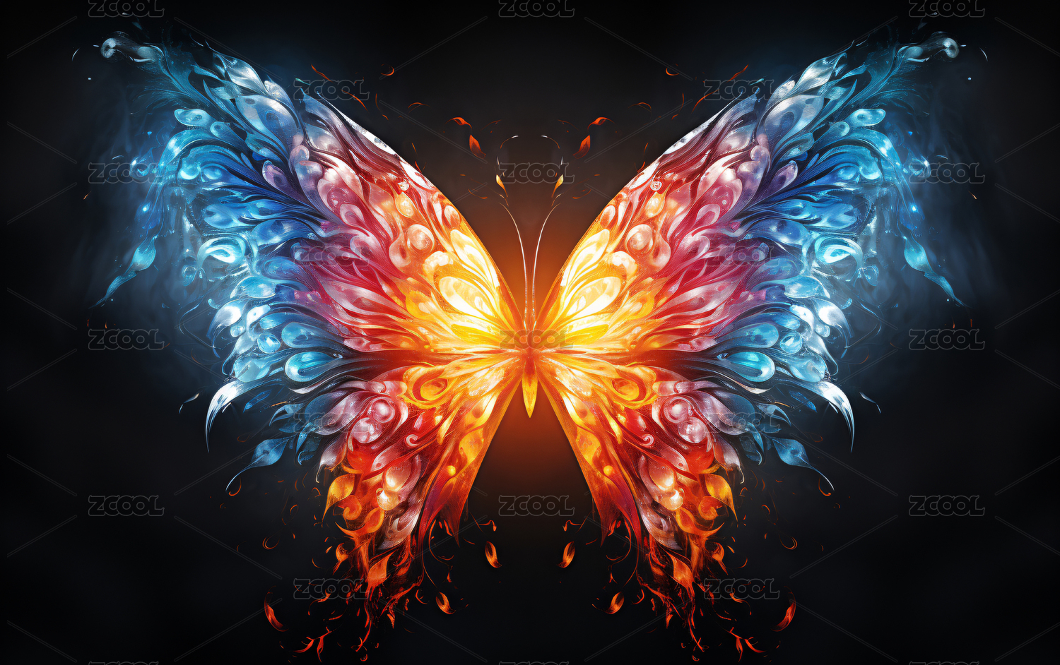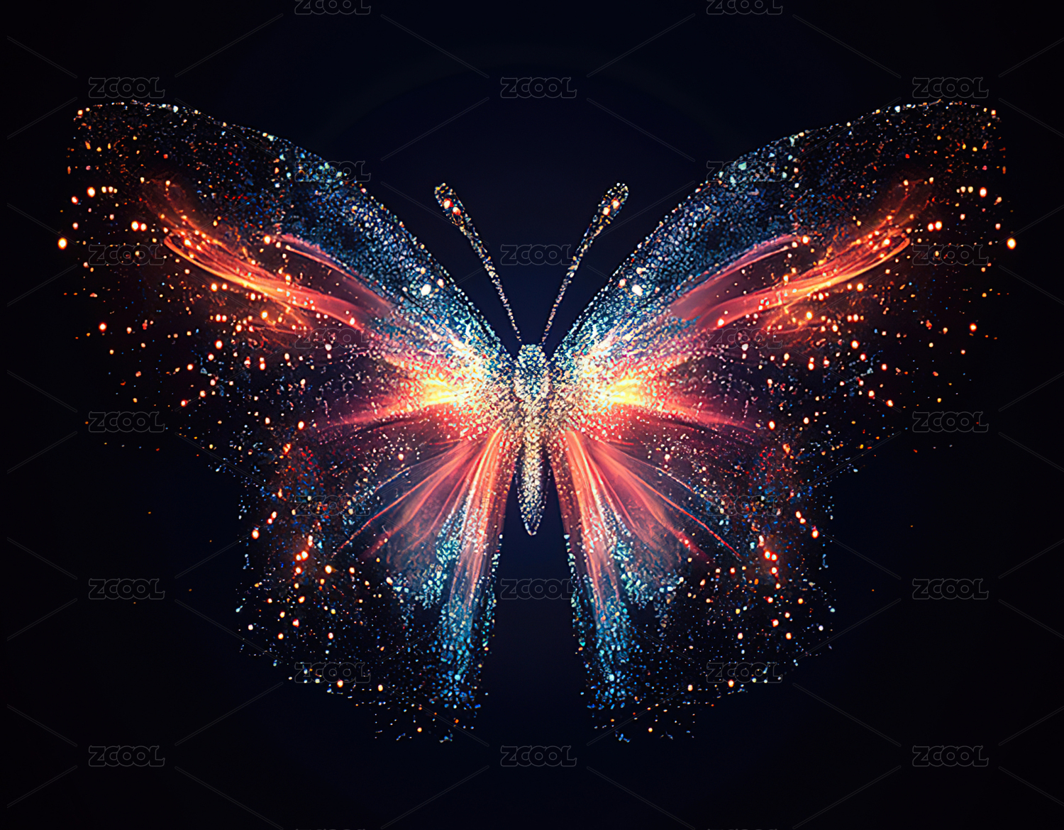 黑色背景的现代光效科技感3D彩色蝴蝶