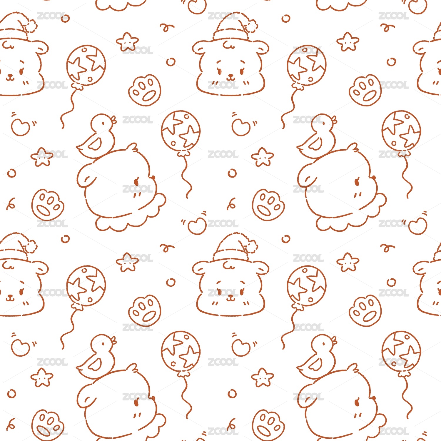 儿童可爱风格卡通小熊头像无缝四方连续背景