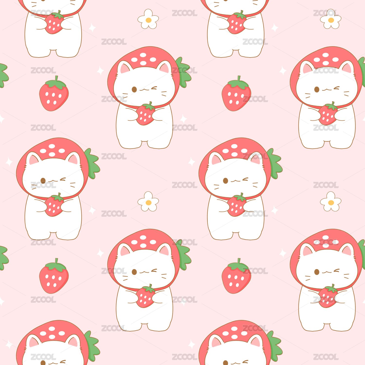 清新可爱手绘小兔子草莓儿童风格无缝背景