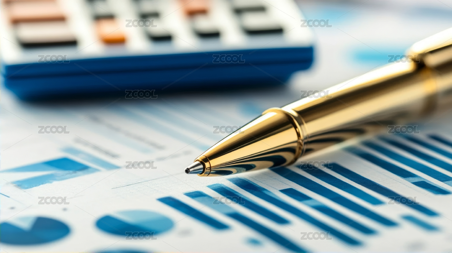 钢笔 计算器 眼镜放在统计图表背景上