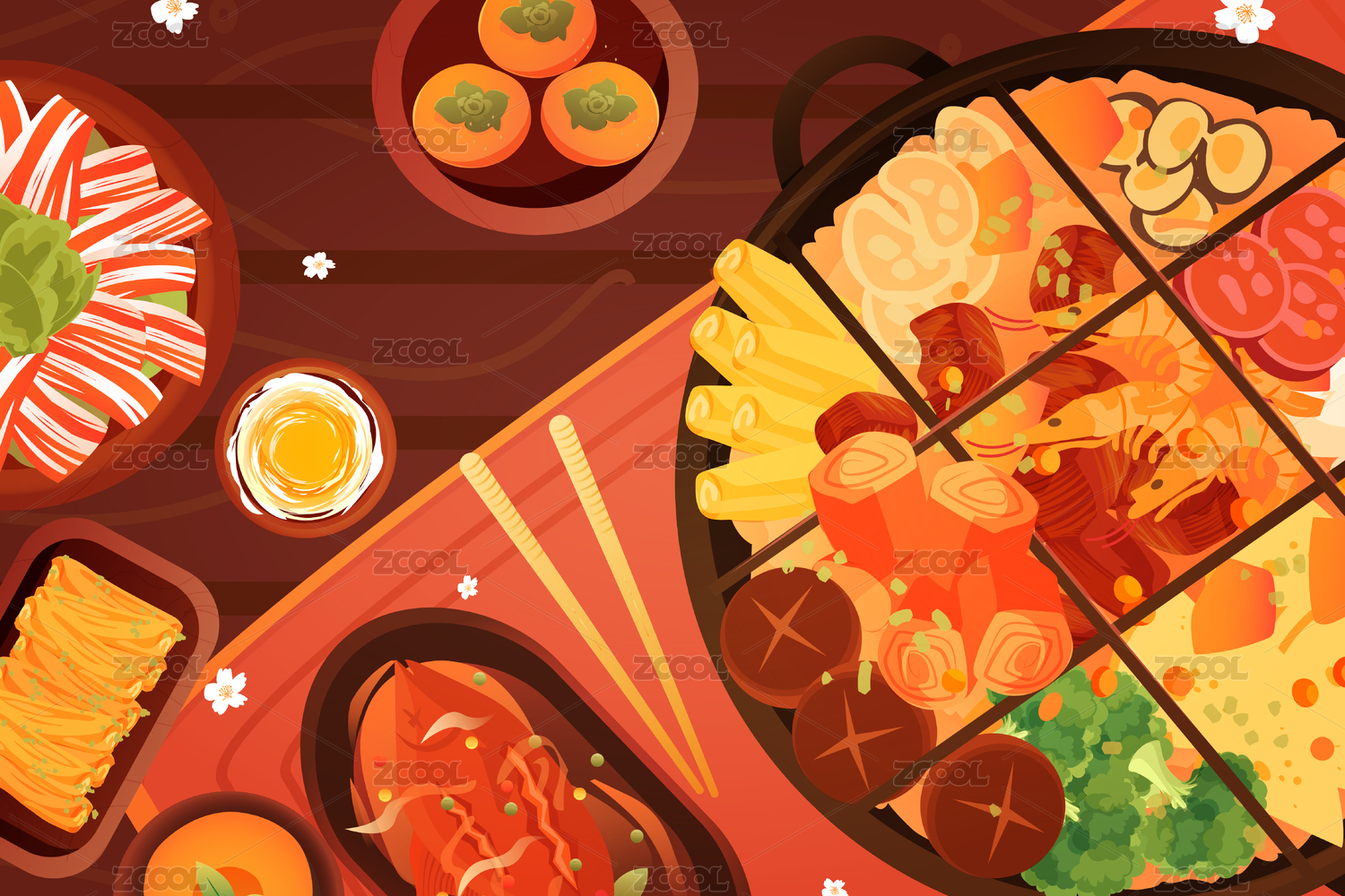 丰盛火锅插画