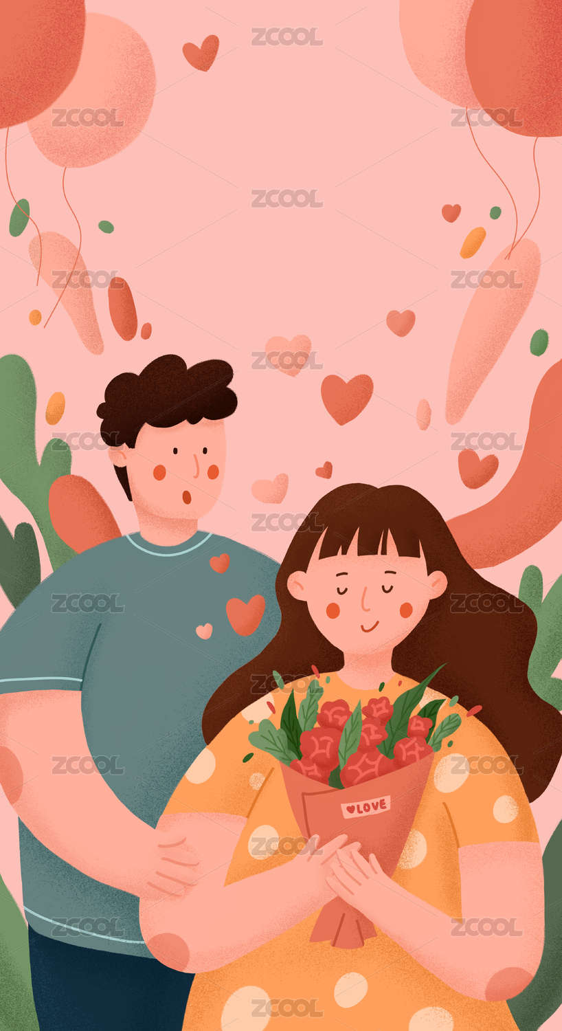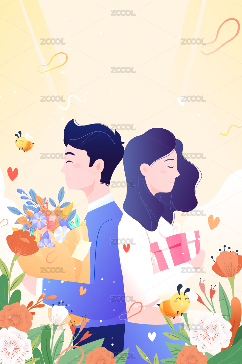 520情人节浪漫求爱插画甜蜜爱情情侣海报