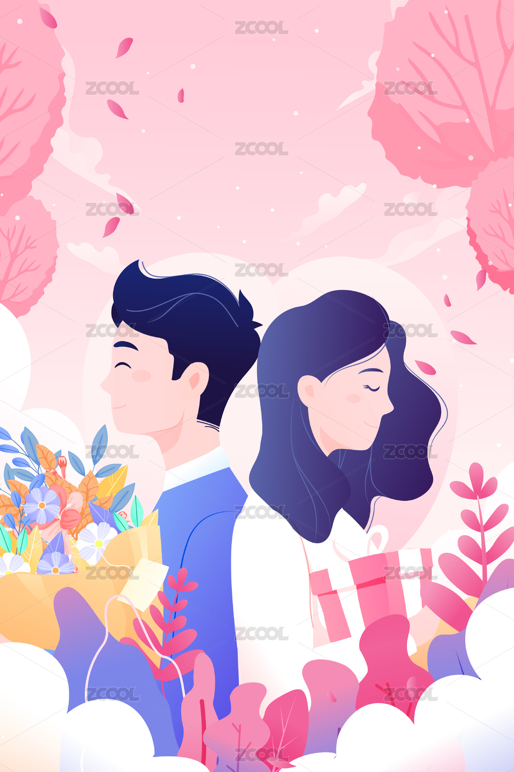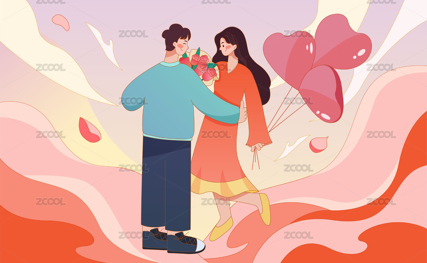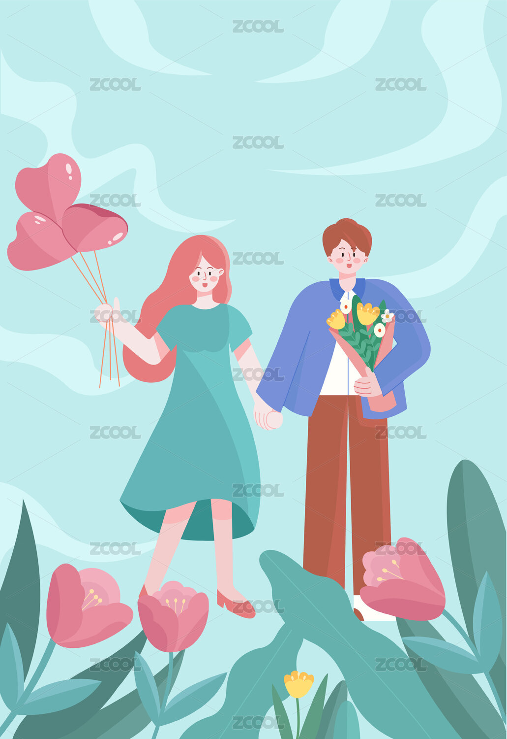 情侣情人节表白日约会恋人浪漫旅行爱情插画
