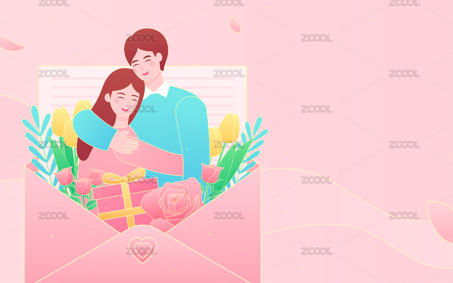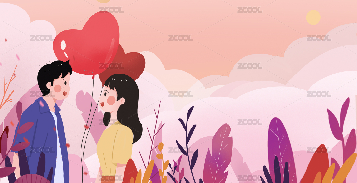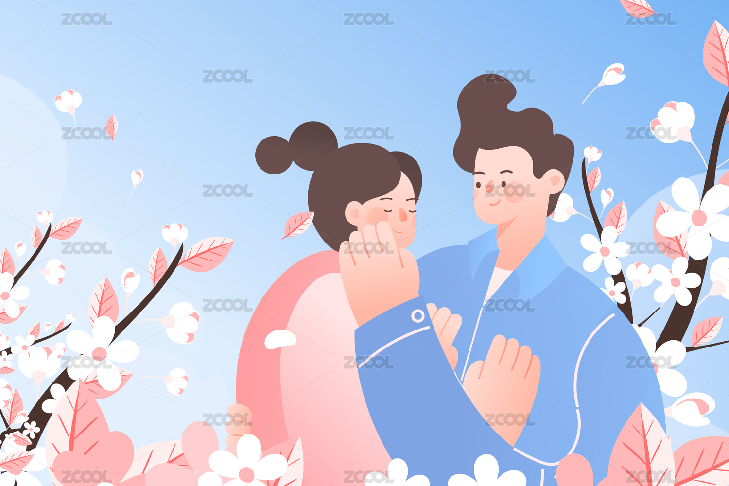 情侣情人节表白日约会恋人浪漫旅行爱情插画