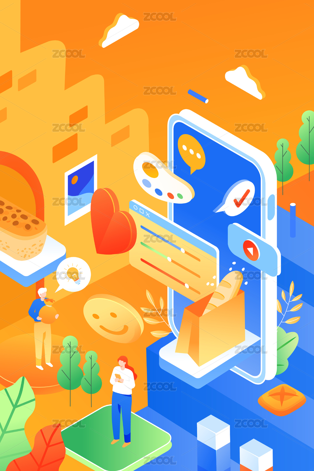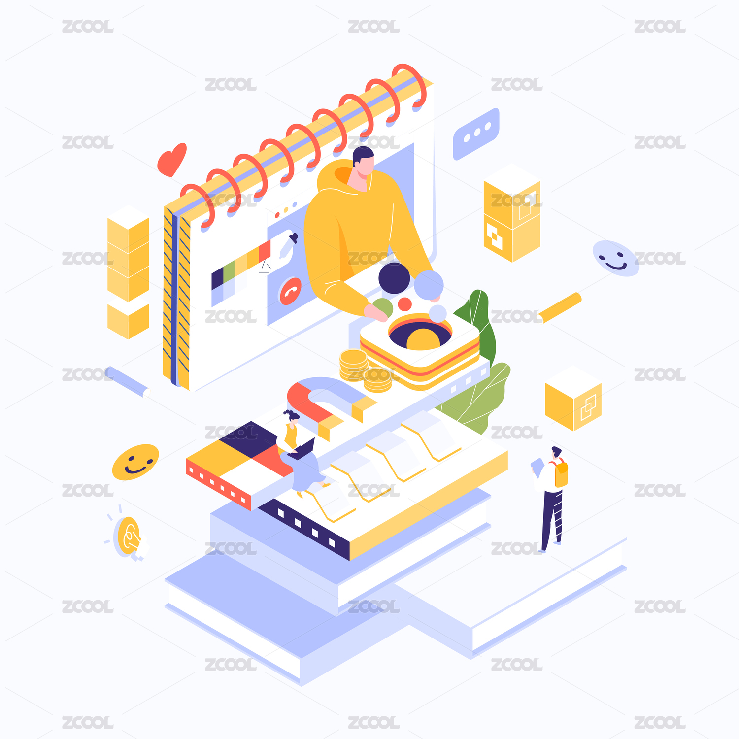矢量,卡通,渐变,扁平,插画,插图,背景,元素,等距,25D