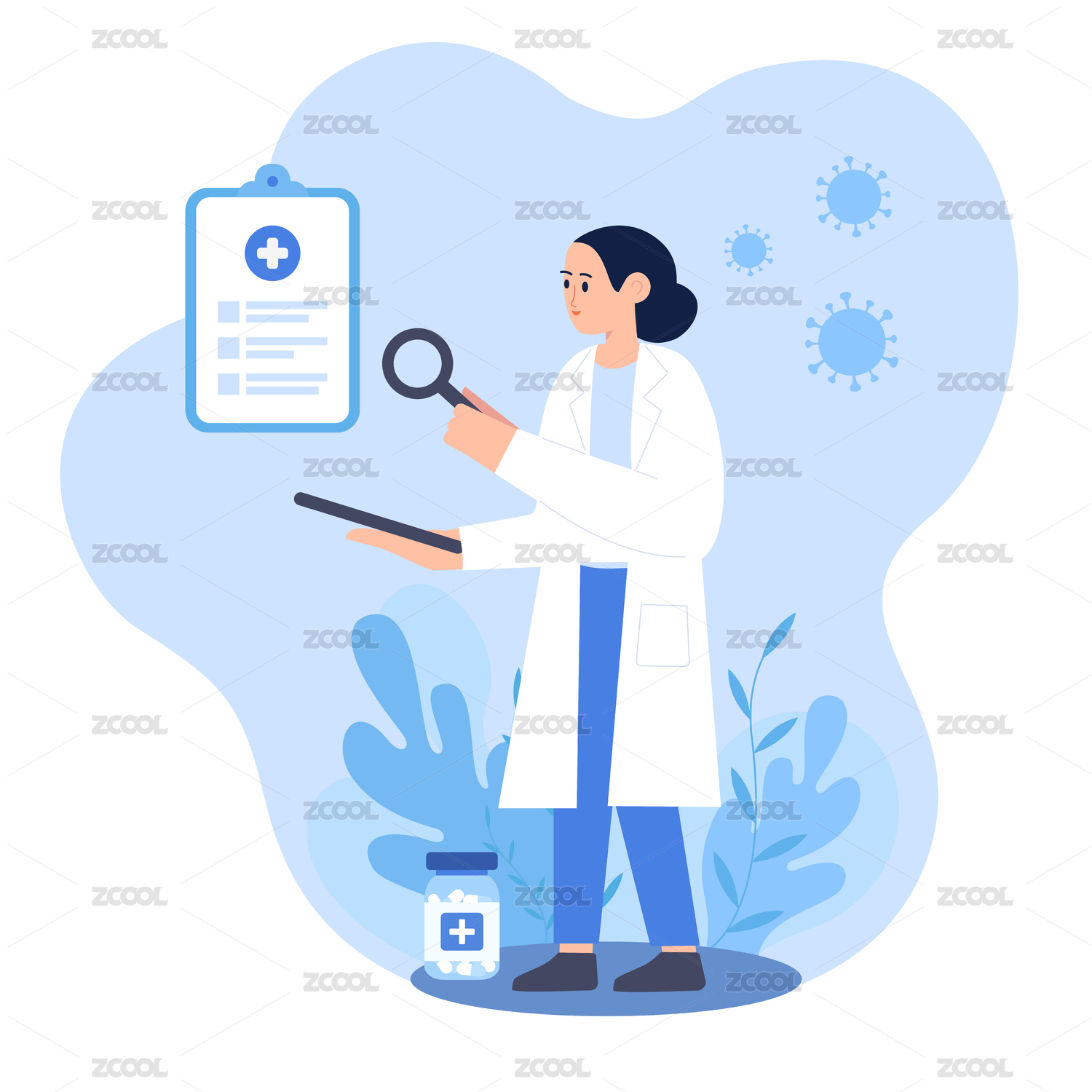 粉色卡通手绘医生研究肺炎病毒插画单体元素