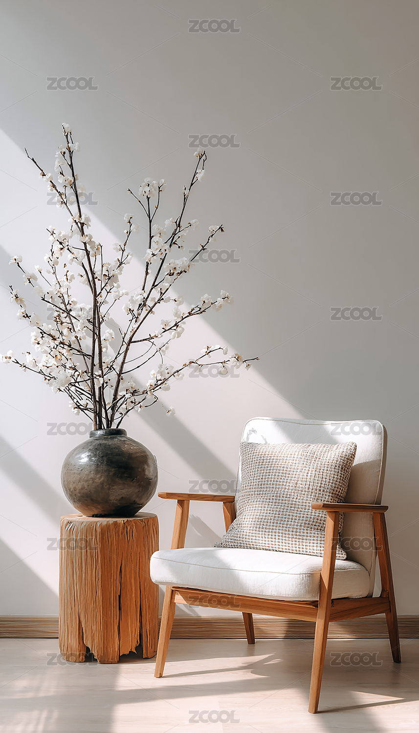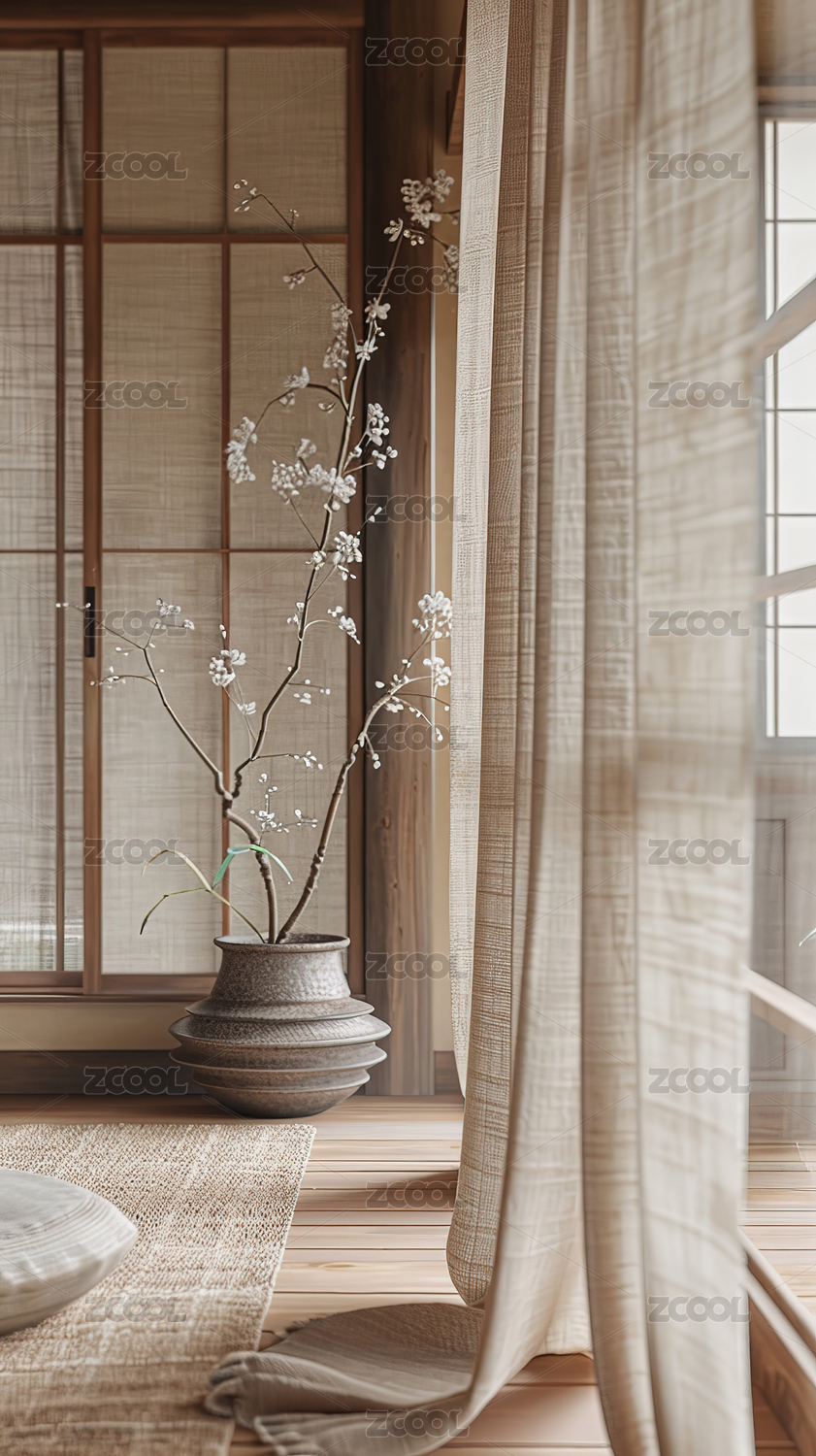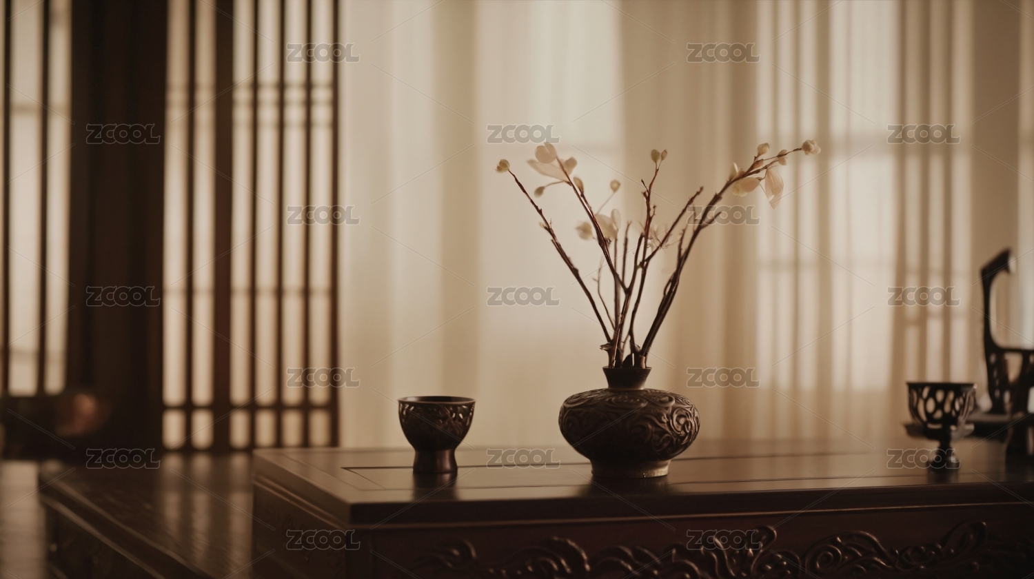 中式植物陶瓷罐子室内场景