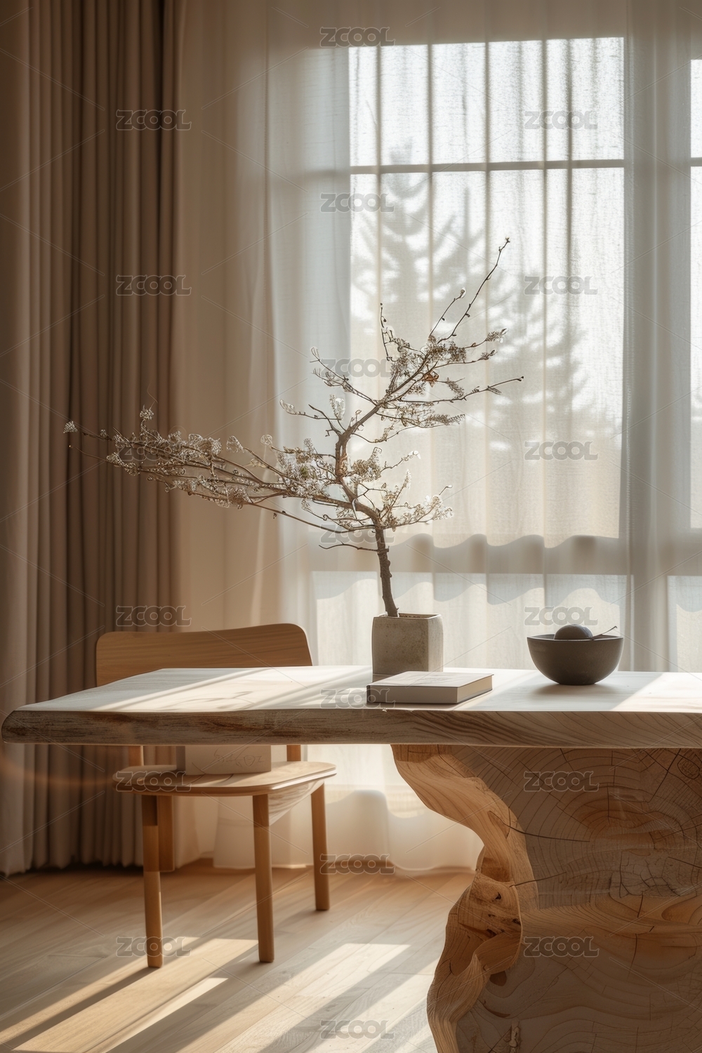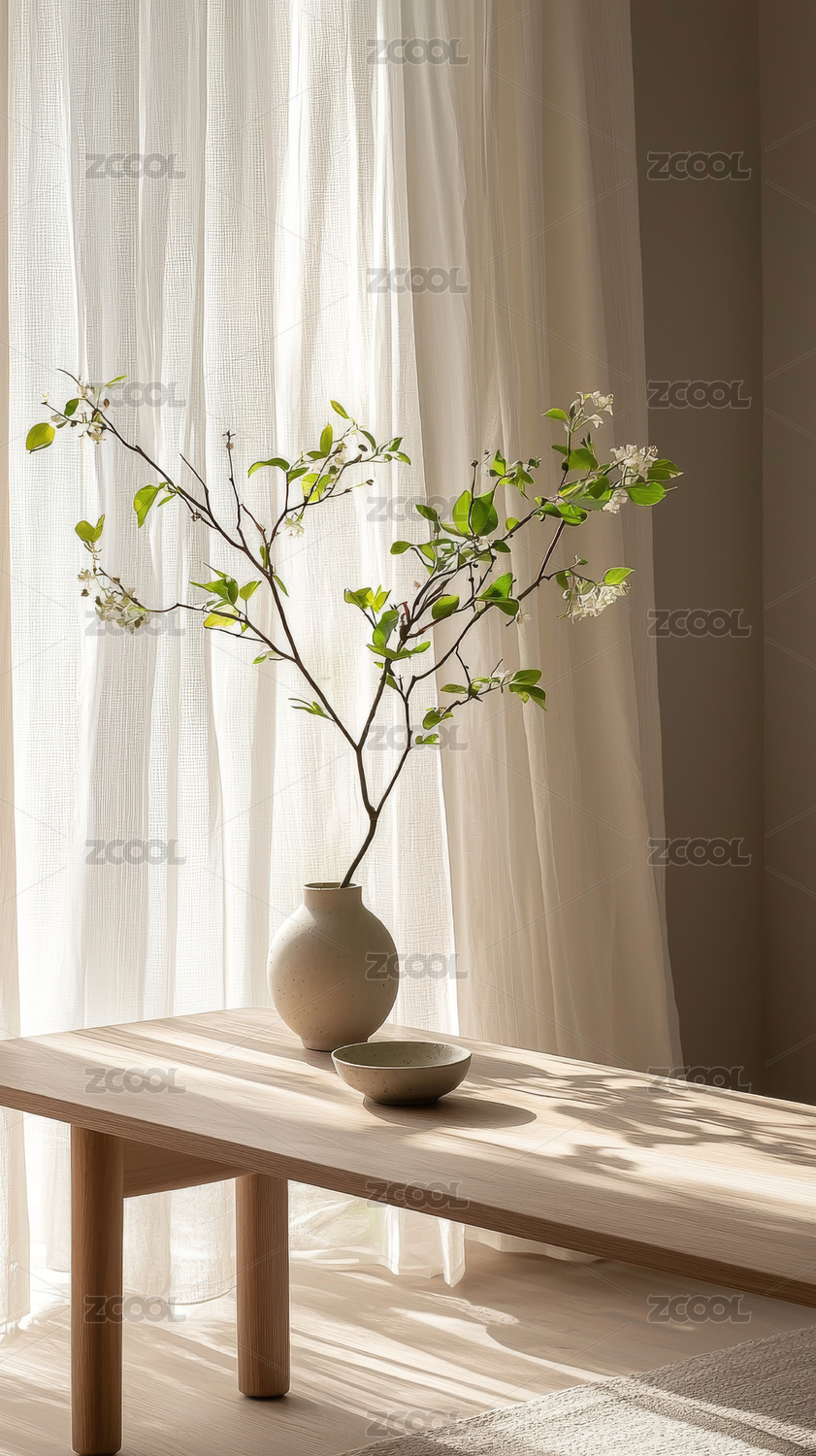 窗边花瓶与光影