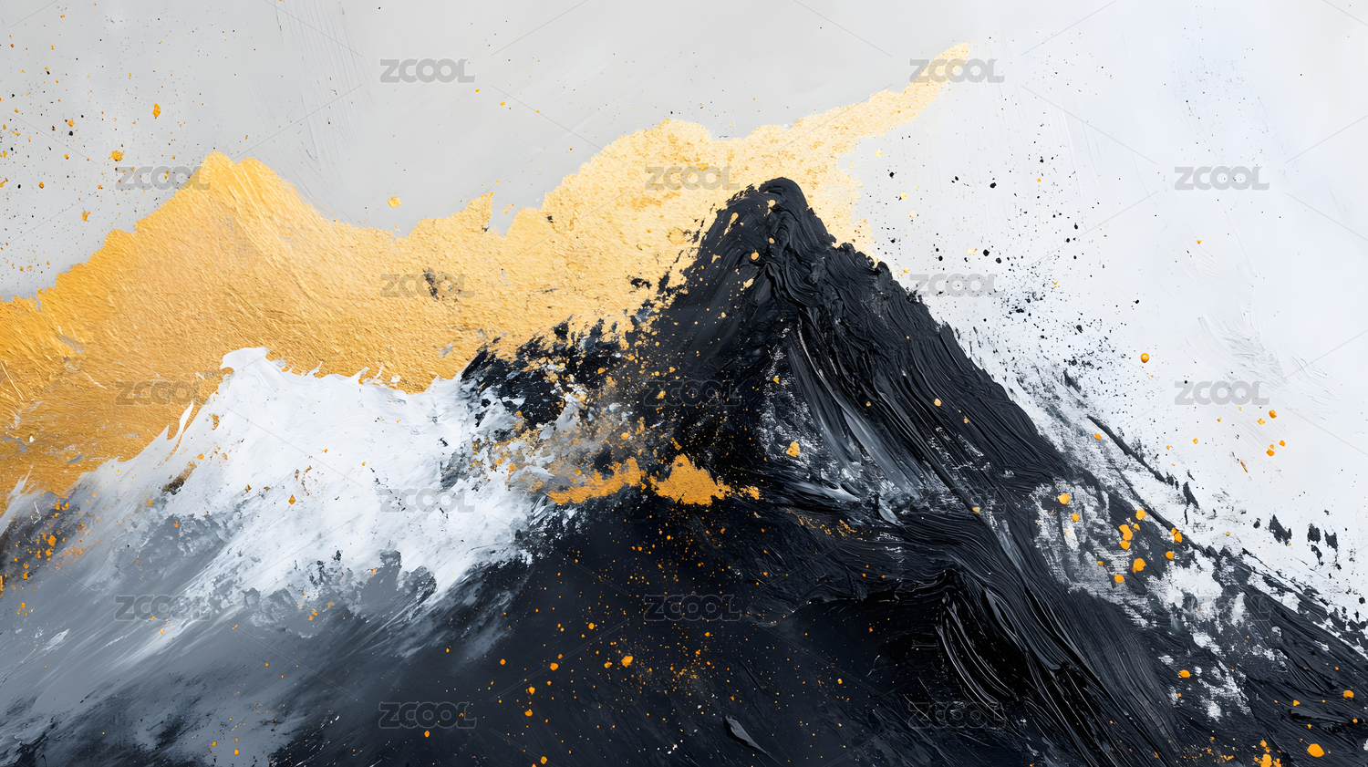 黑白金抽象流体金箔大气装饰画插画背景