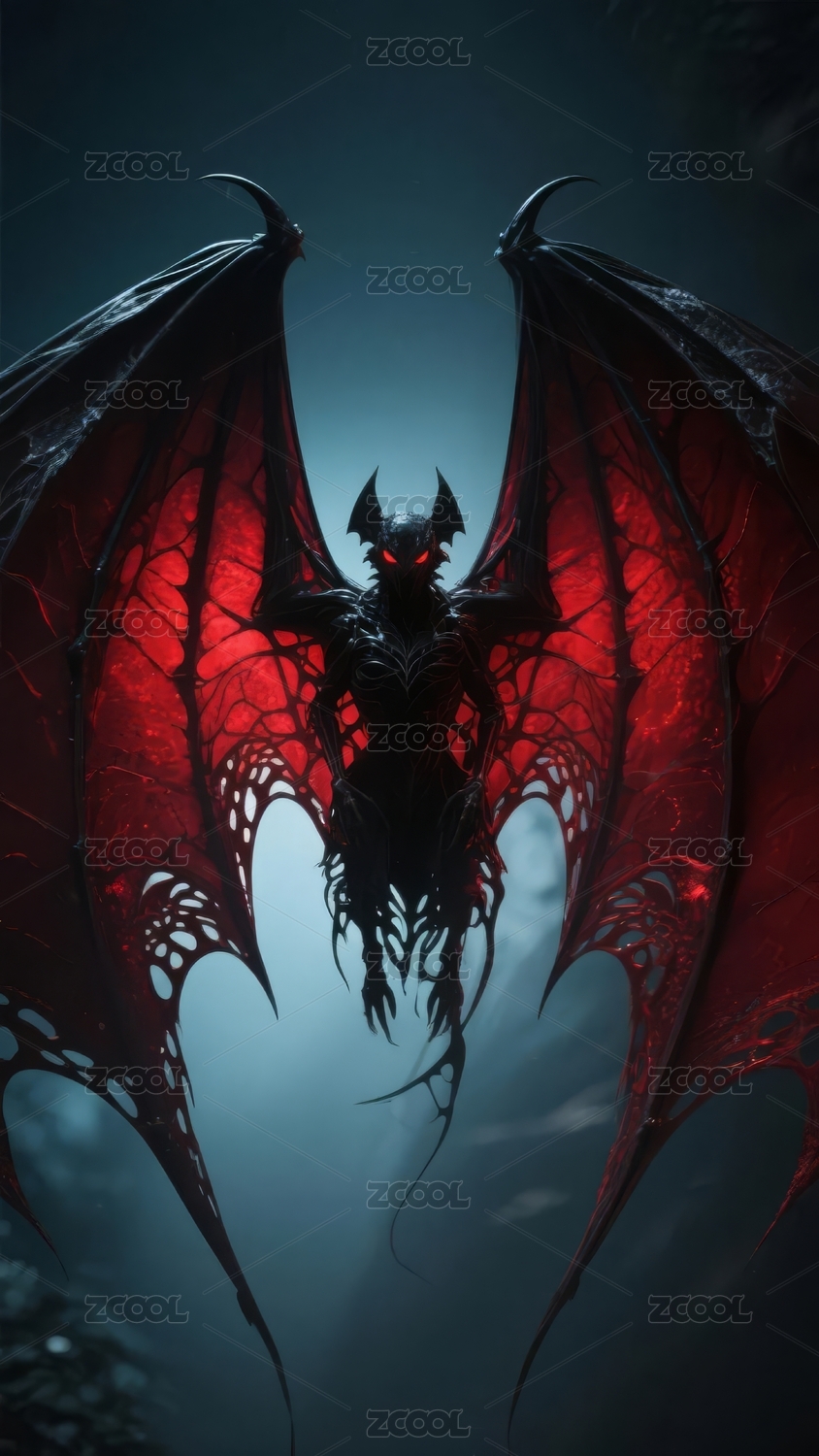 黑暗中的红色恶魔翅膀