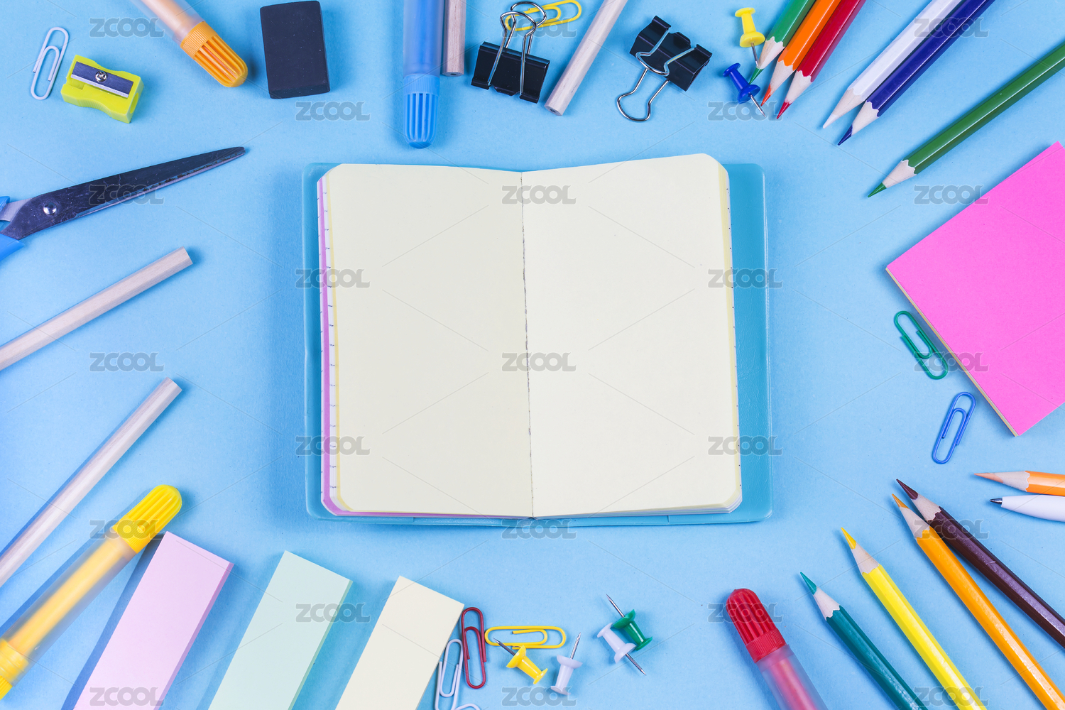 彩色文具学习用品创意图