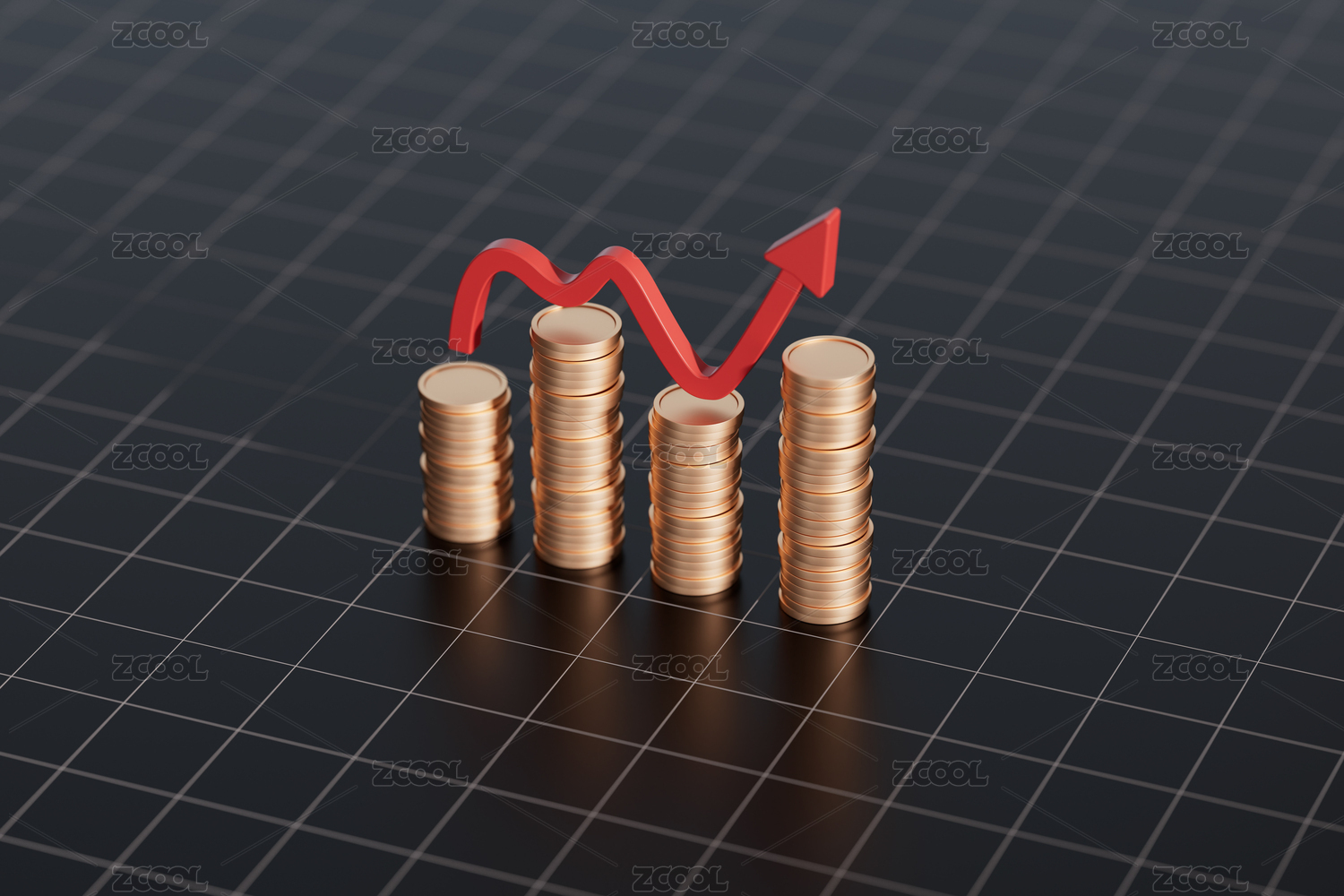 金币堆叠与上升曲线图