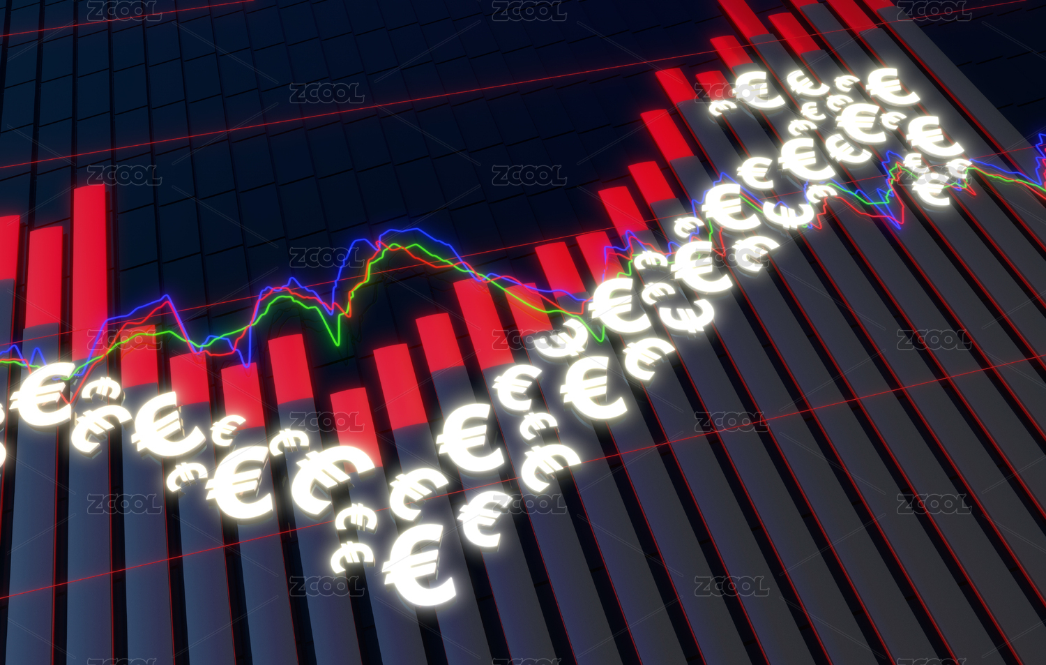 欧元货币符号组成的成功箭头与数据图表,代表了经济的增长与货币升值