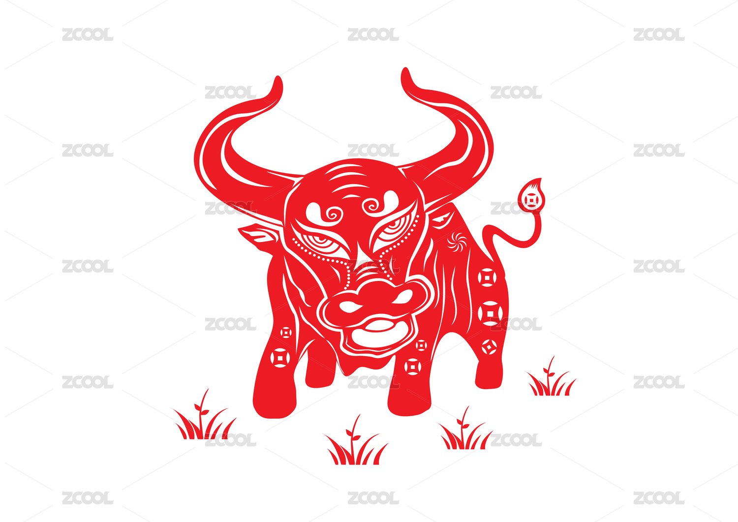 剪纸牛中国传统剪纸窗花门贴红色牛