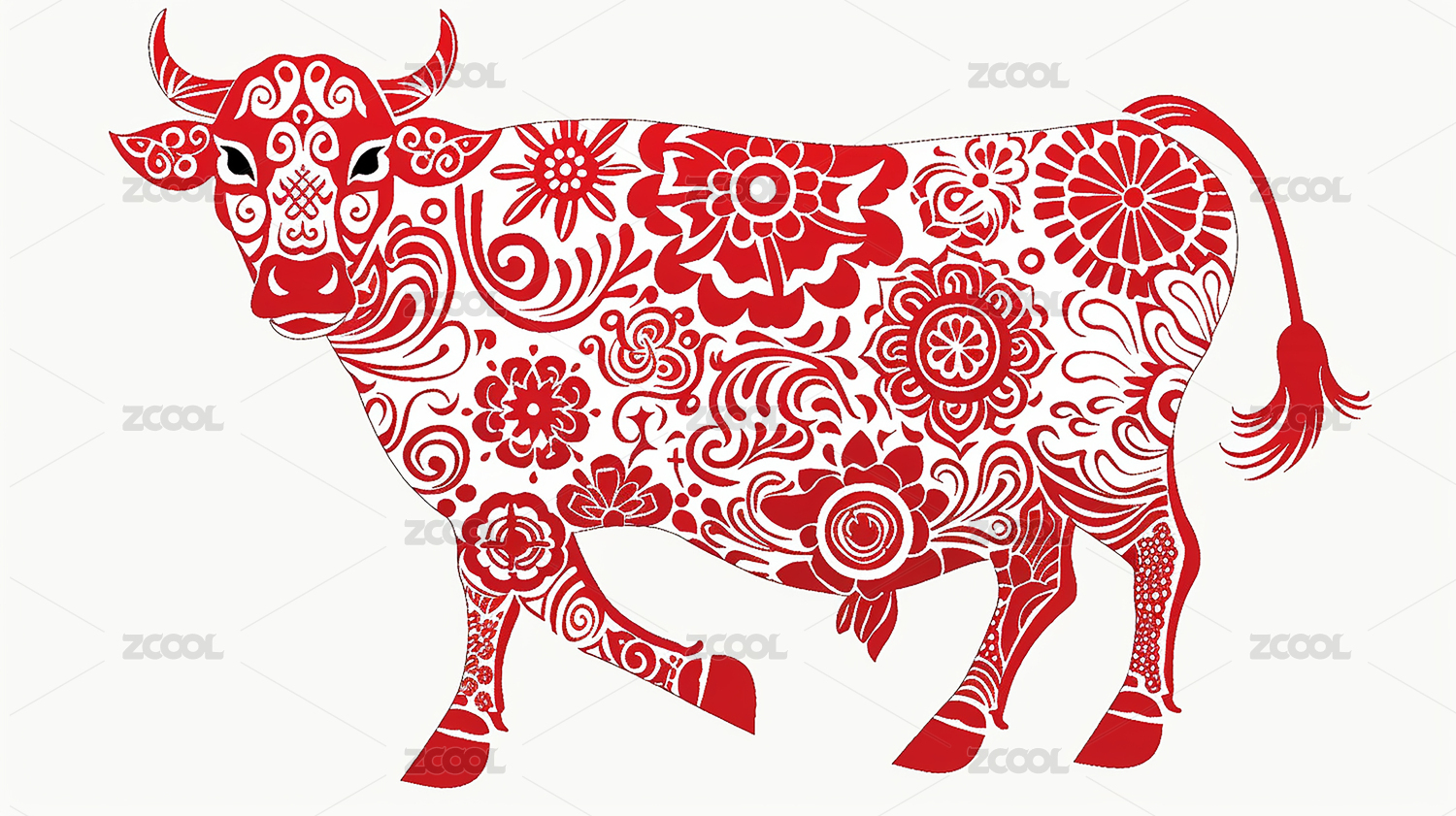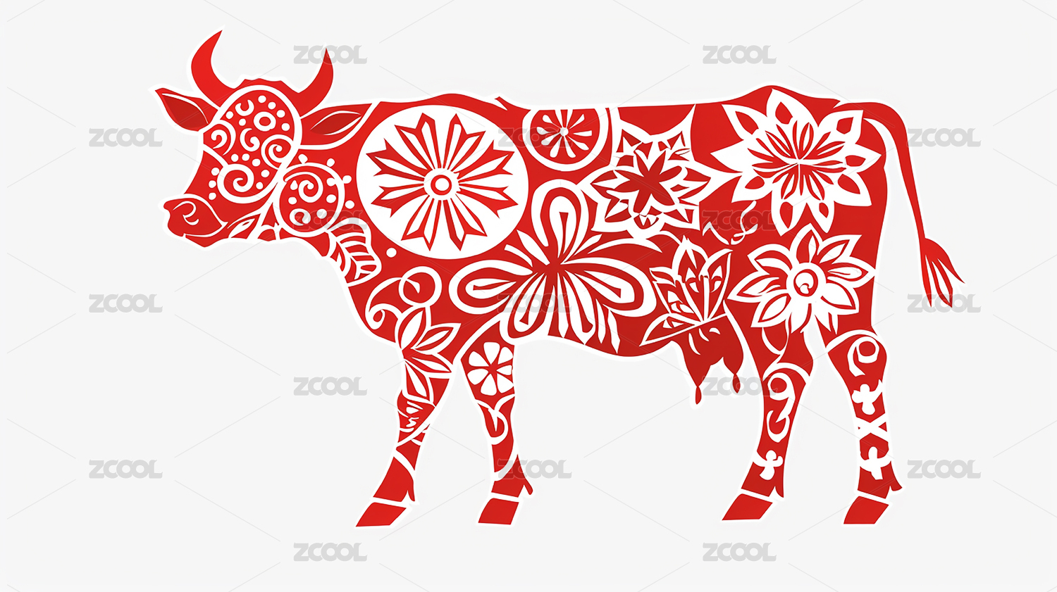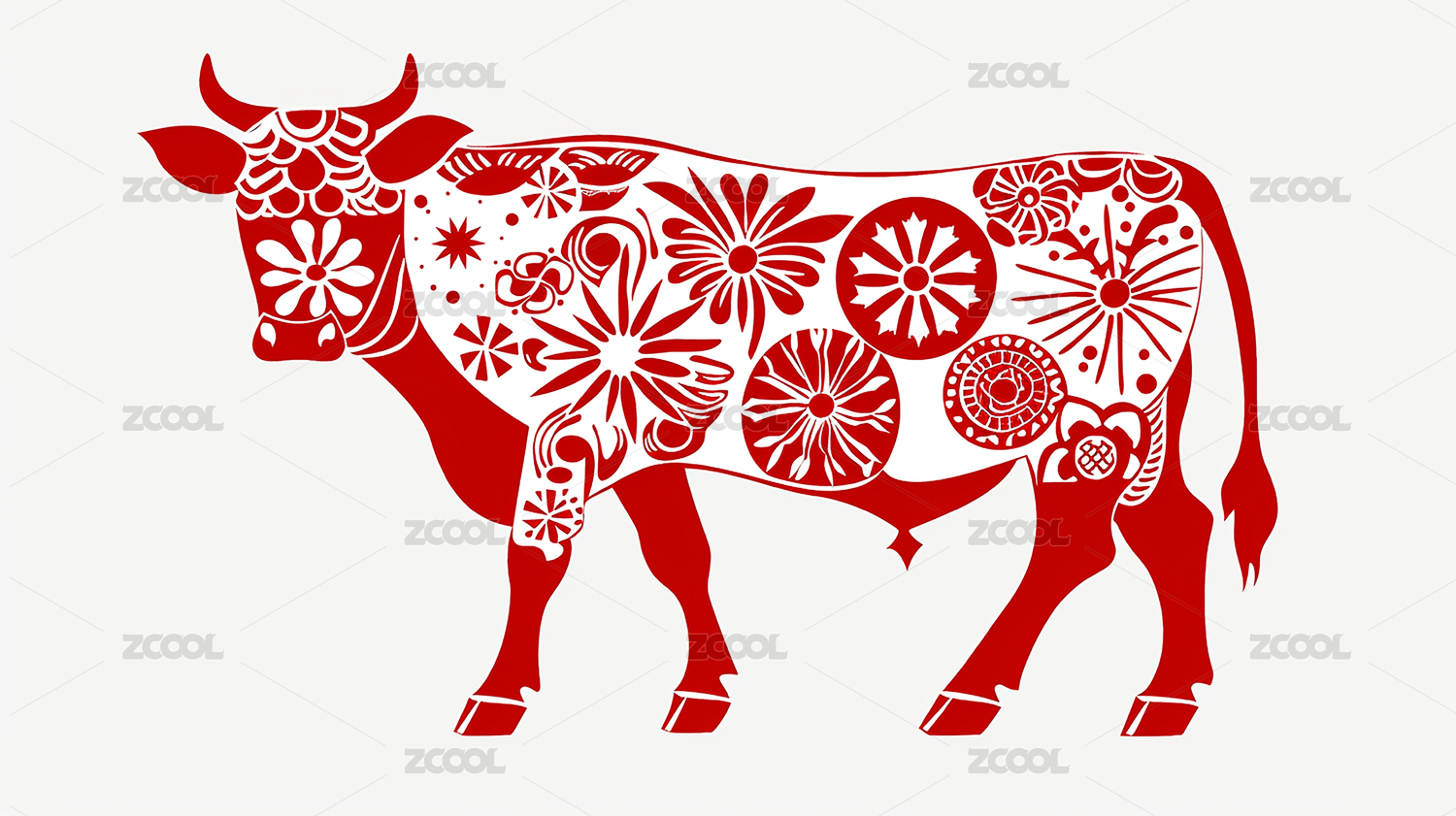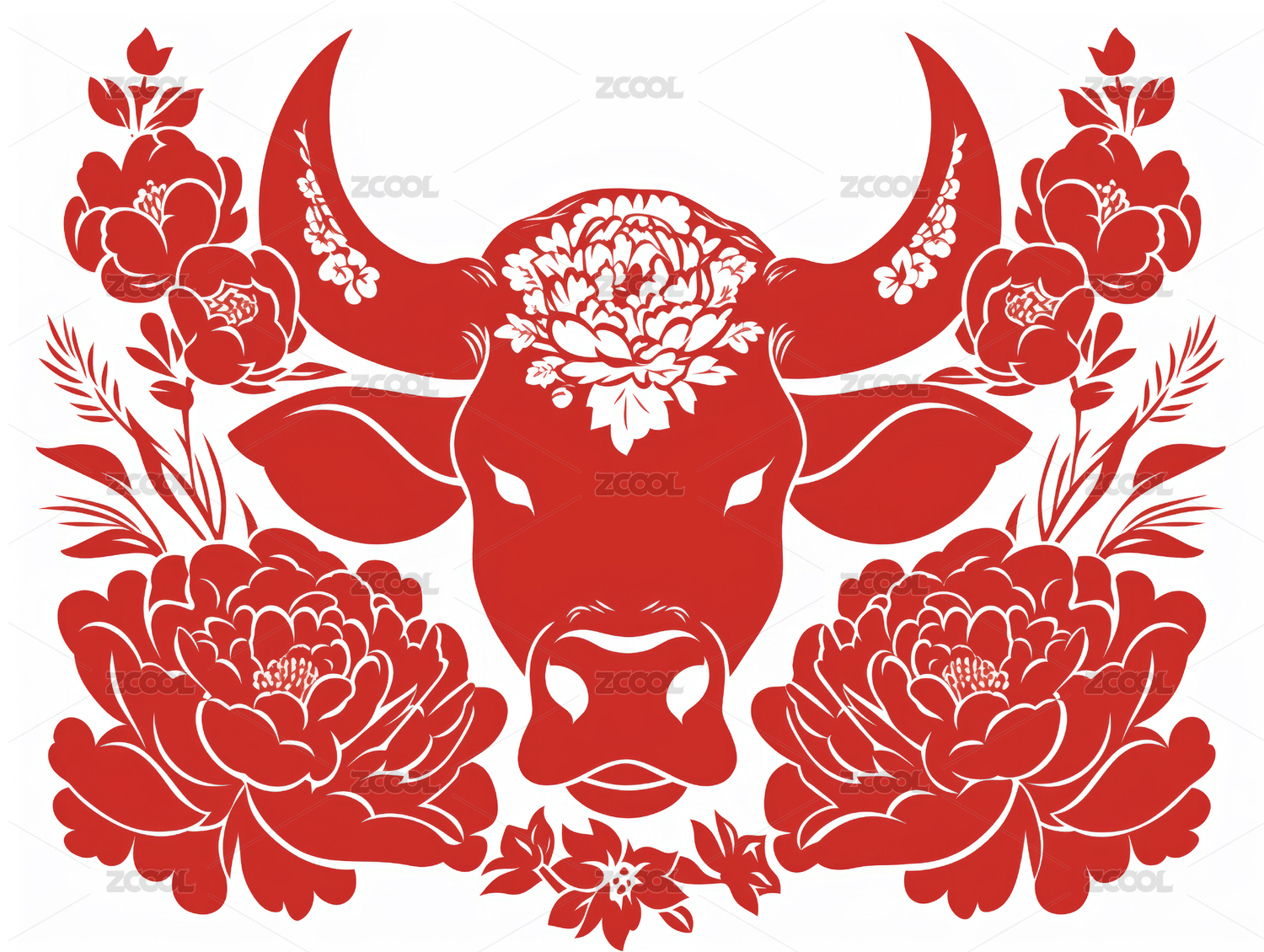 牛十二生肖牡丹红色剪纸套图