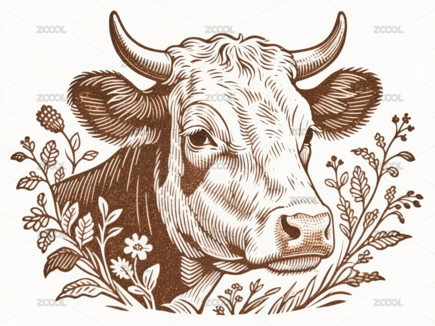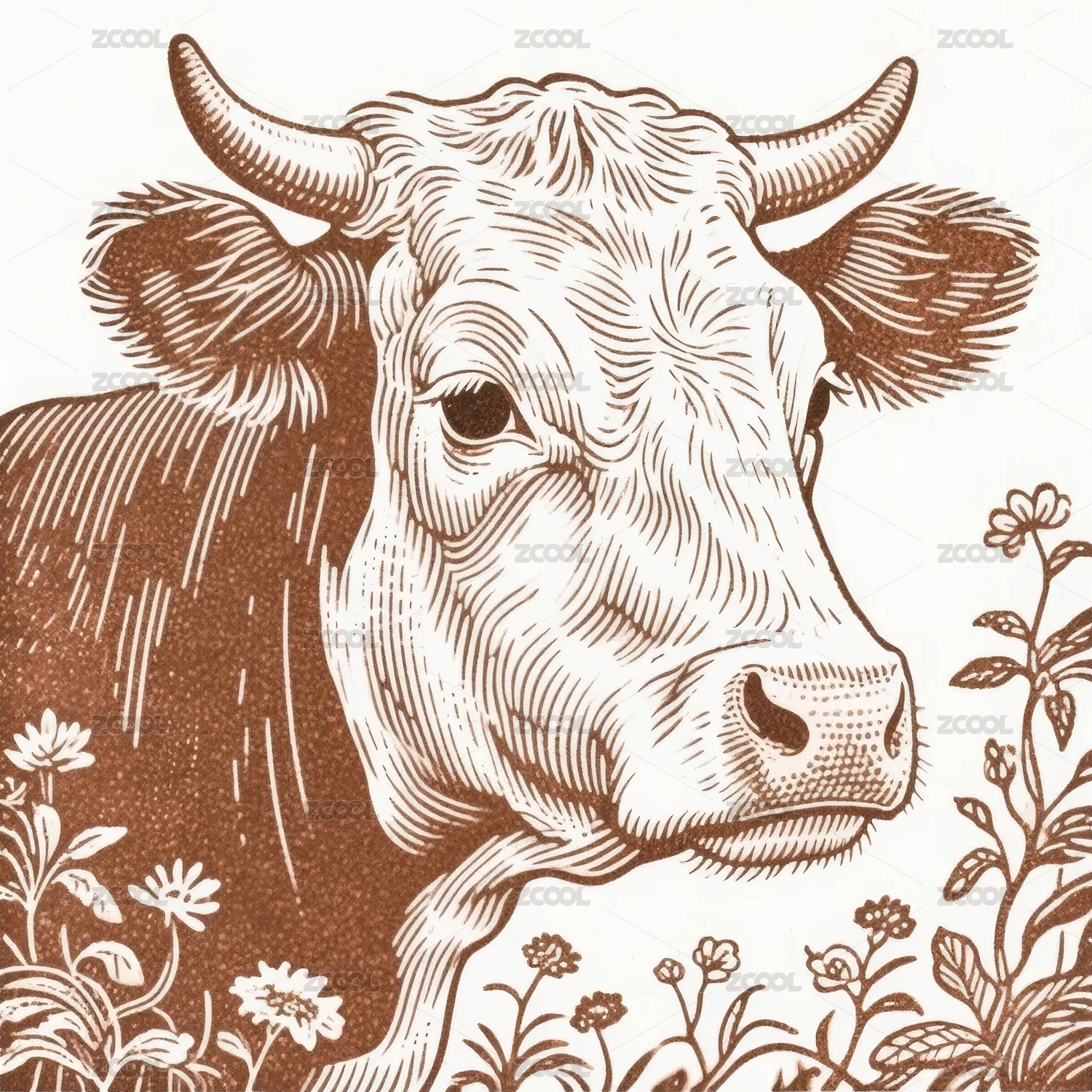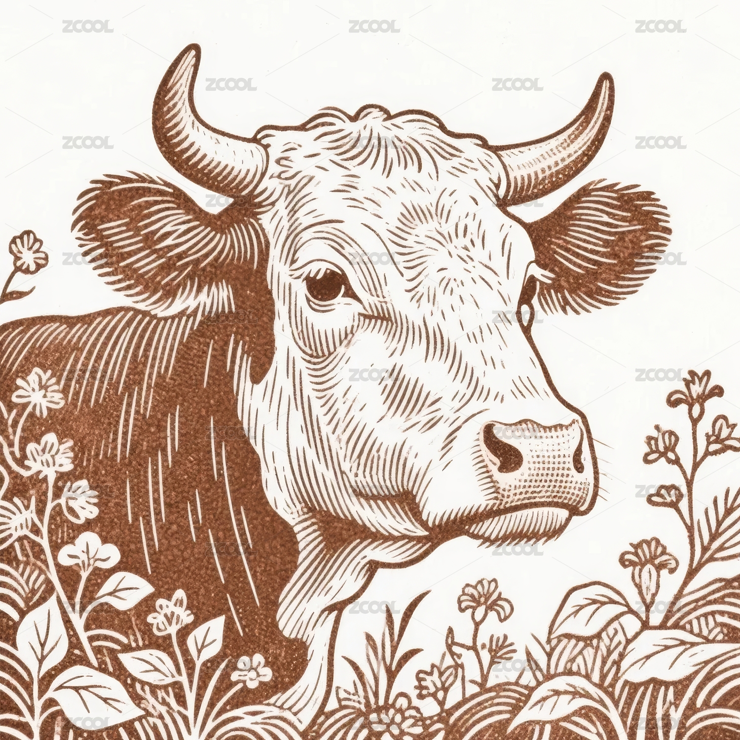 12生肖版画插画-牛