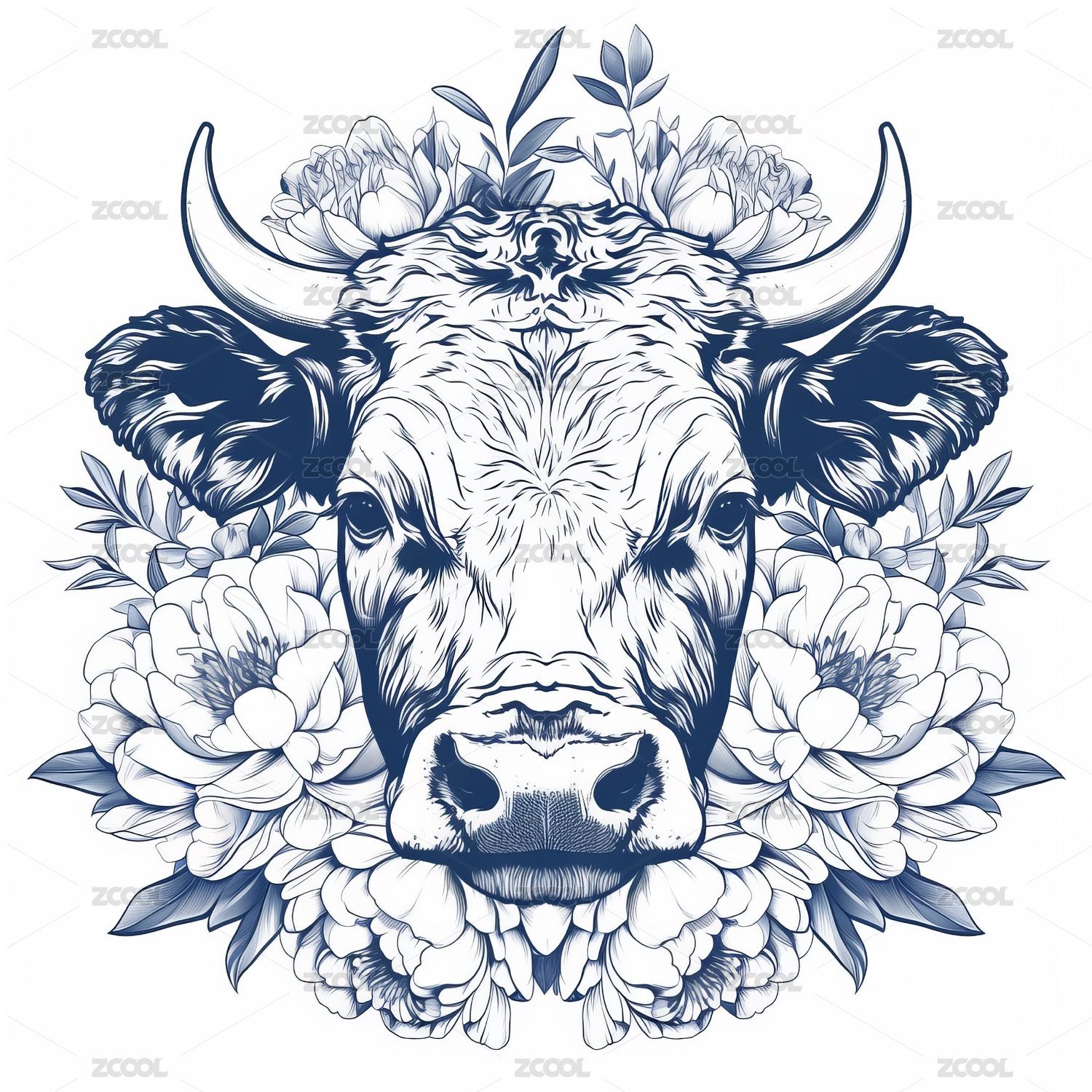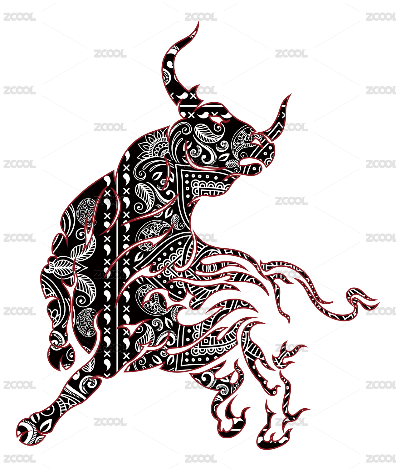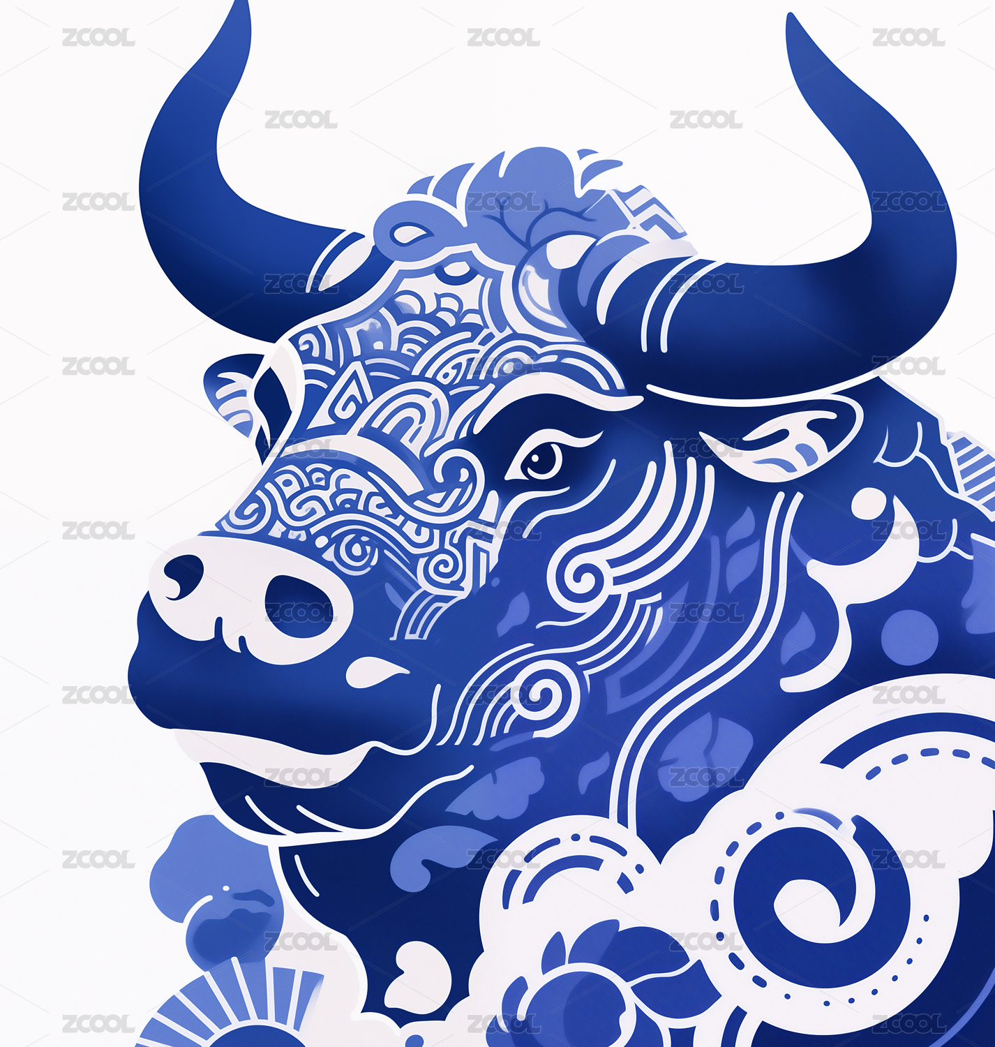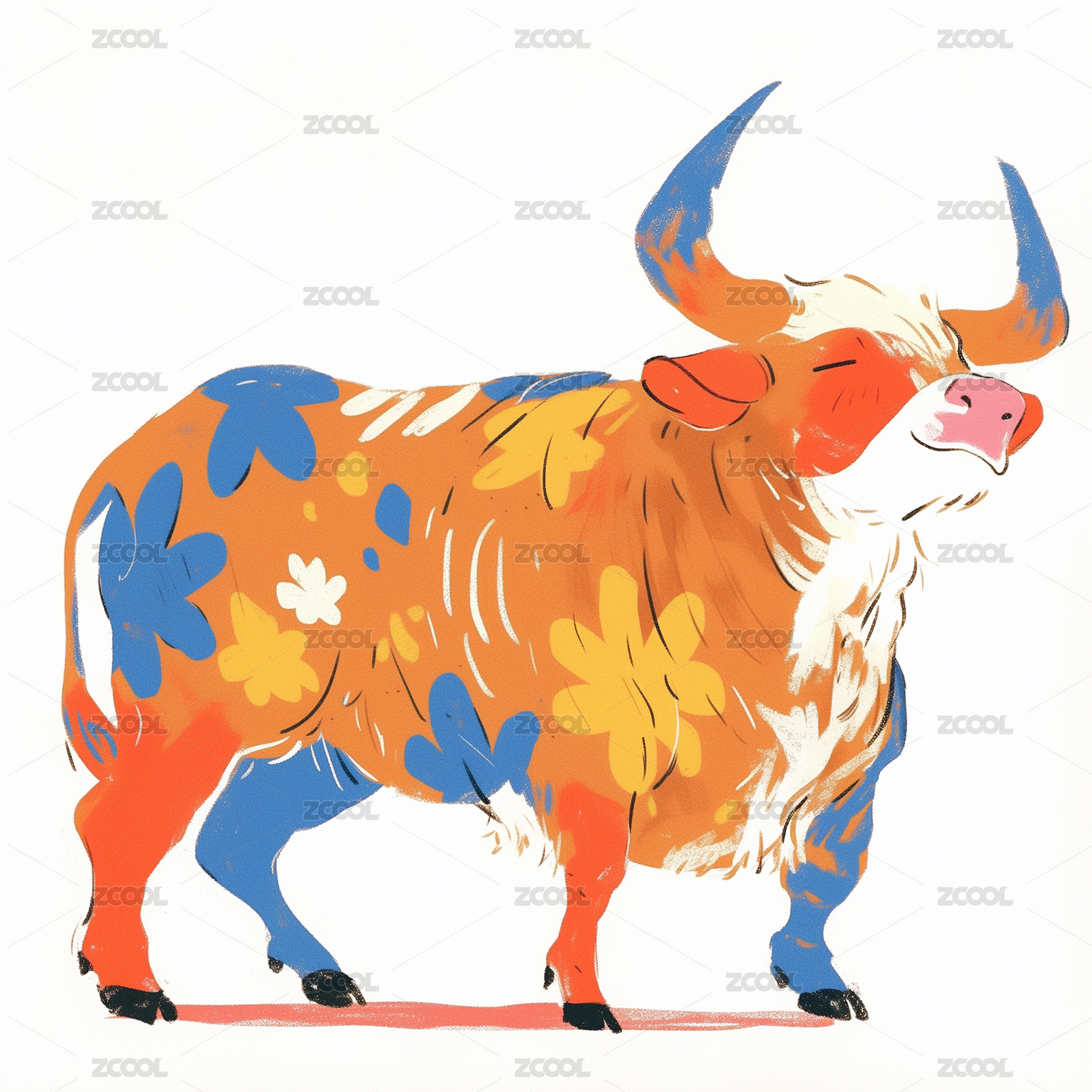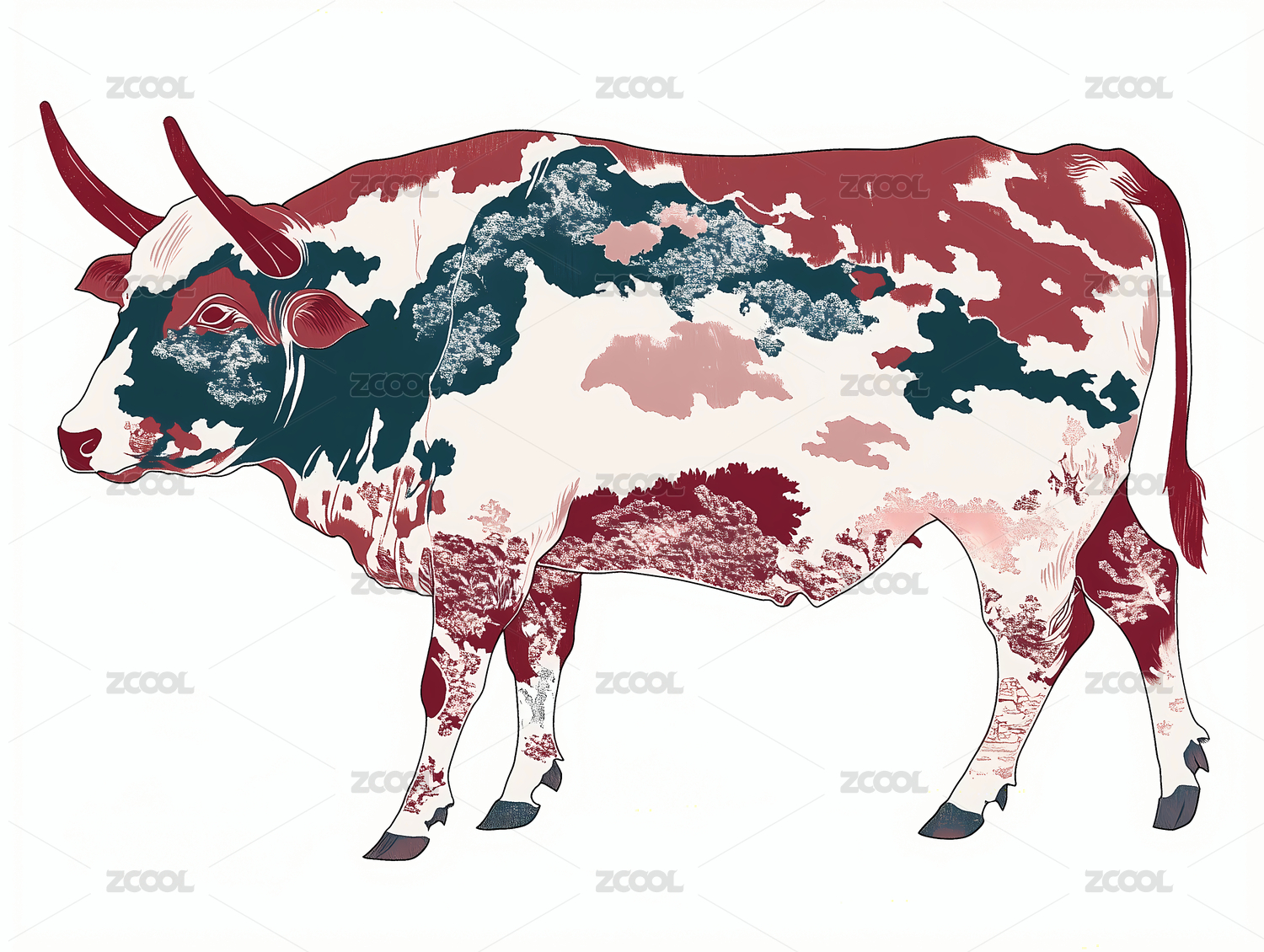 国潮复古抽象牛图腾纹样插画