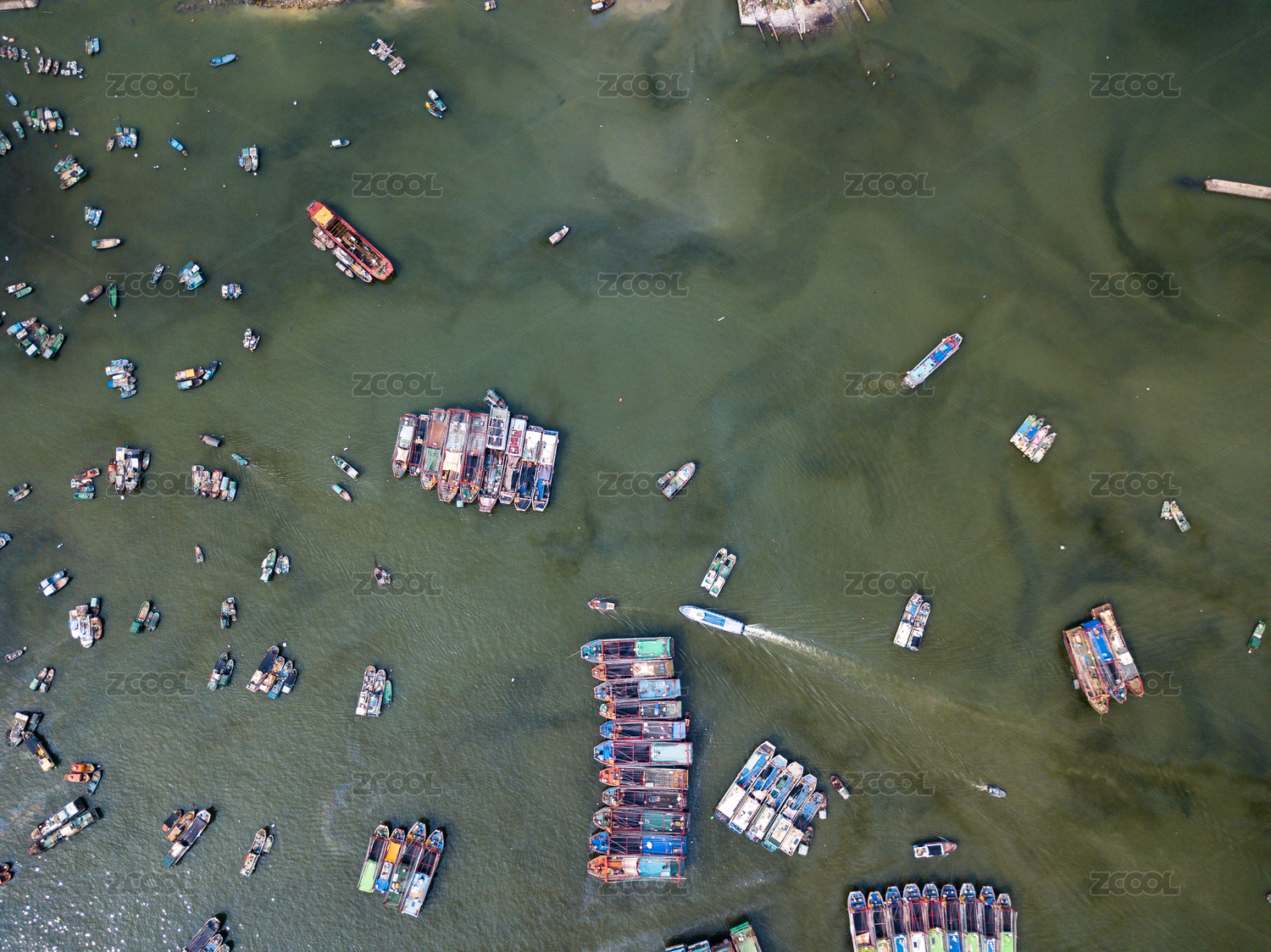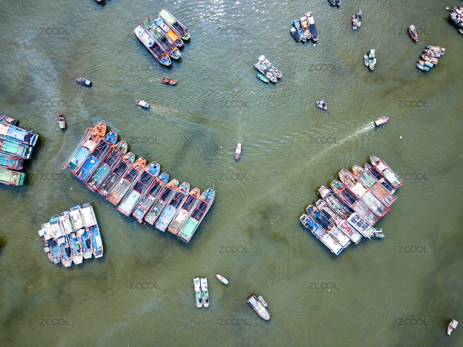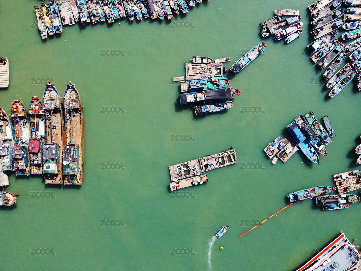 航拍海南海口海甸岛三西路老码头渔港泊船处
