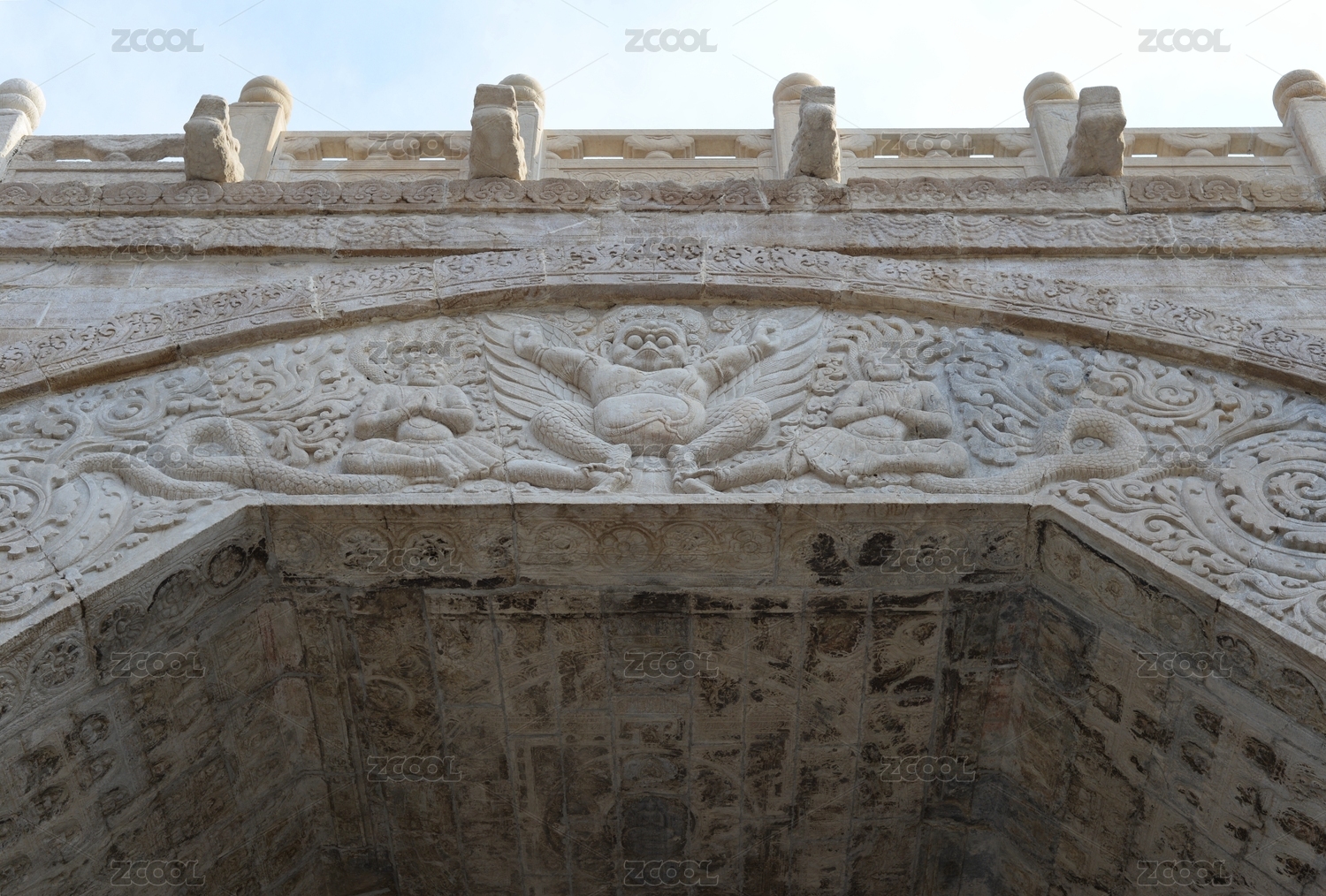 金刚宝座塔墙壁上精致的罗汉和法器雕刻