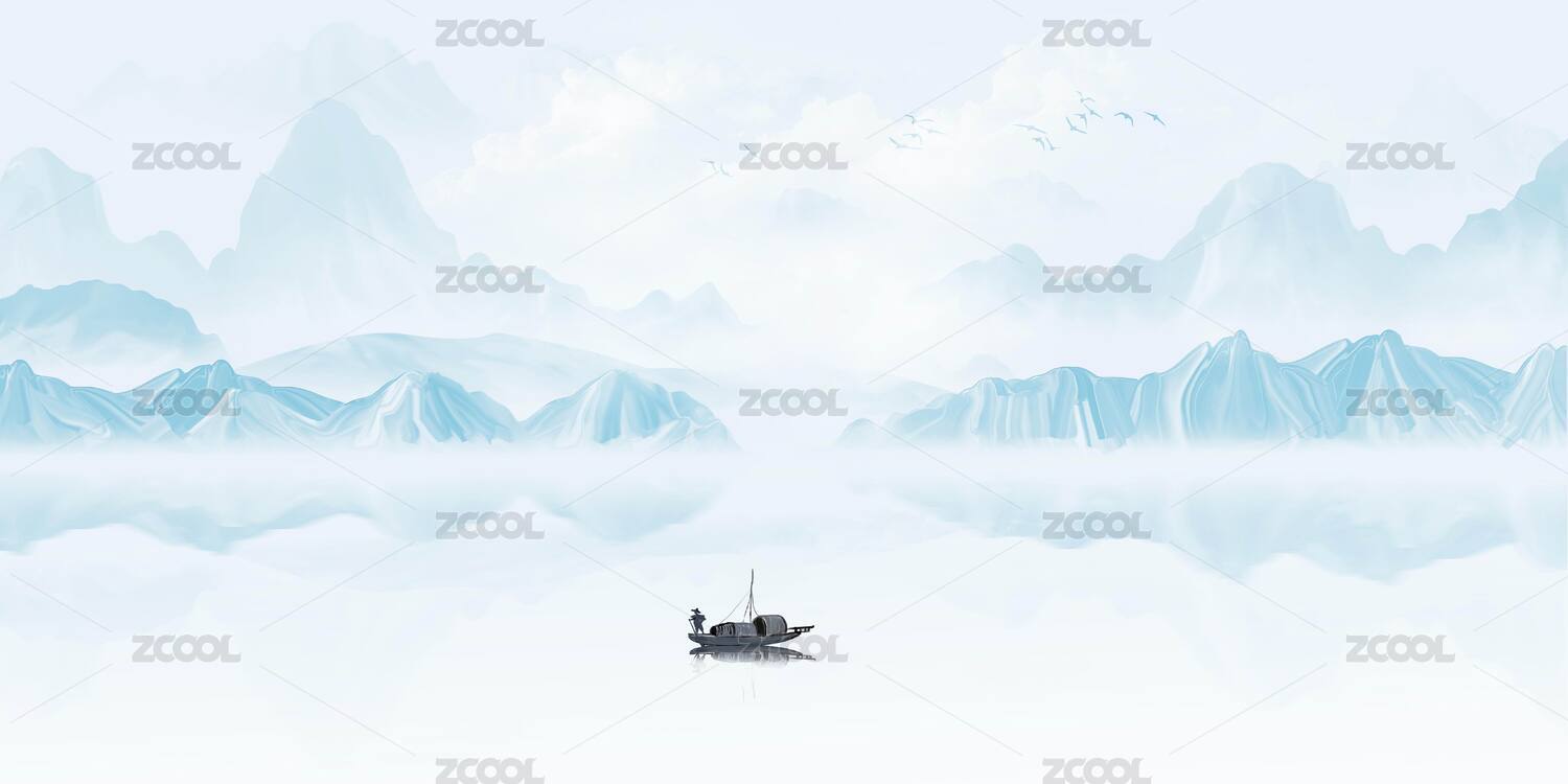 手绘新中式意境山水画插画背景