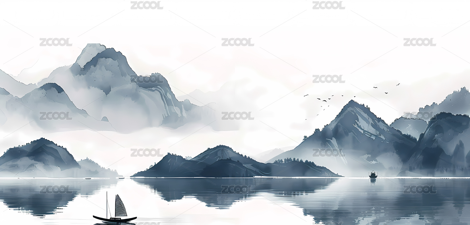 中国风水墨风格山水画