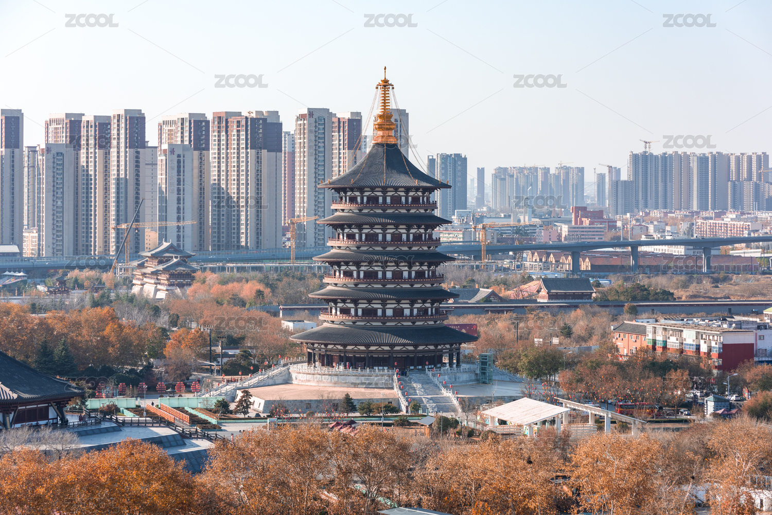 西安大雁塔以及大唐不夜城全景