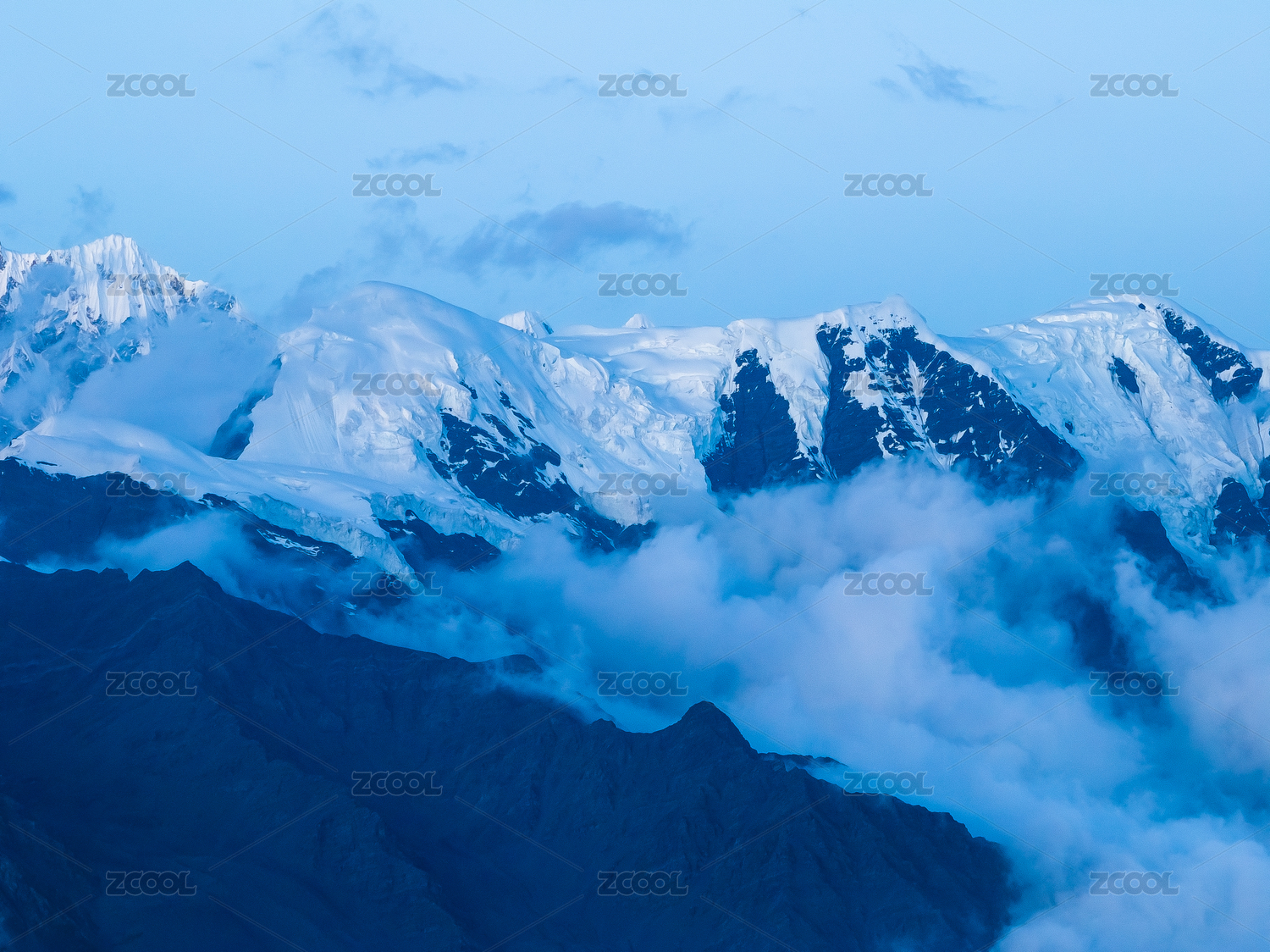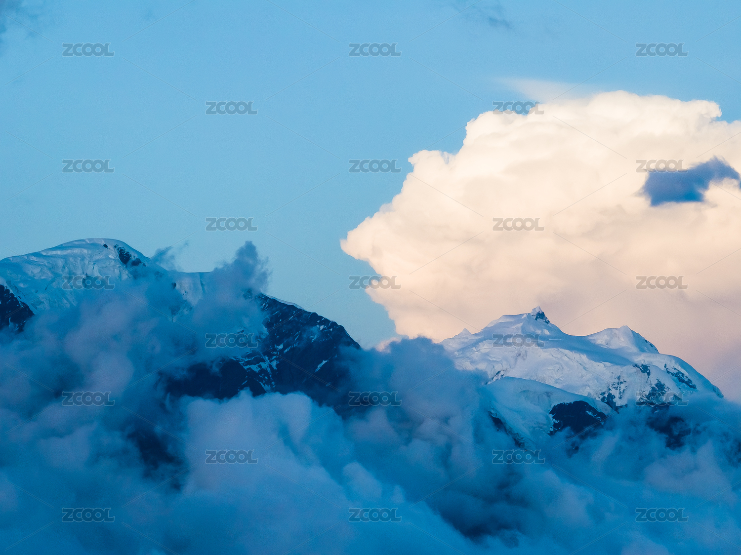 中国西藏高原雪山天空与云海特写