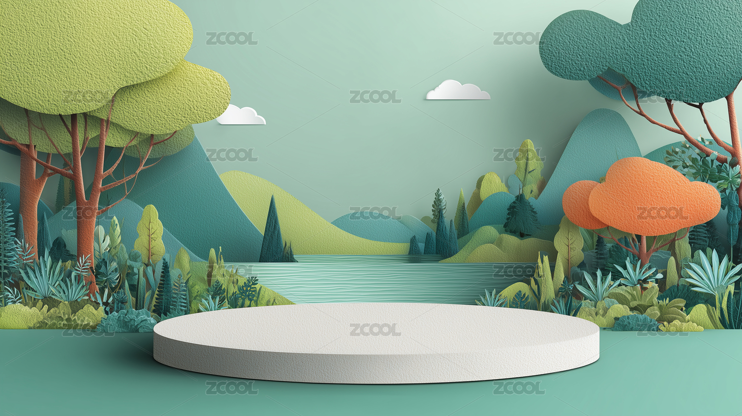 设计,背景,三维图形,简单,室内,艺术,绿色,植物,山峦,展台