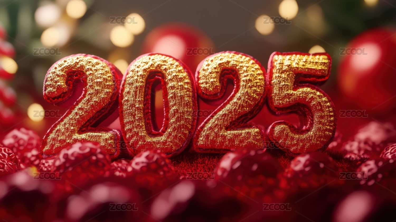 蛇年新年元旦节日喜庆“2025”梅花红色