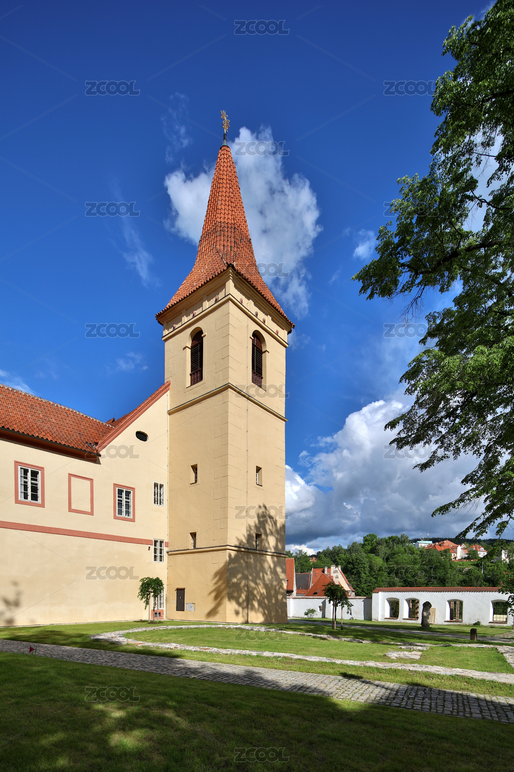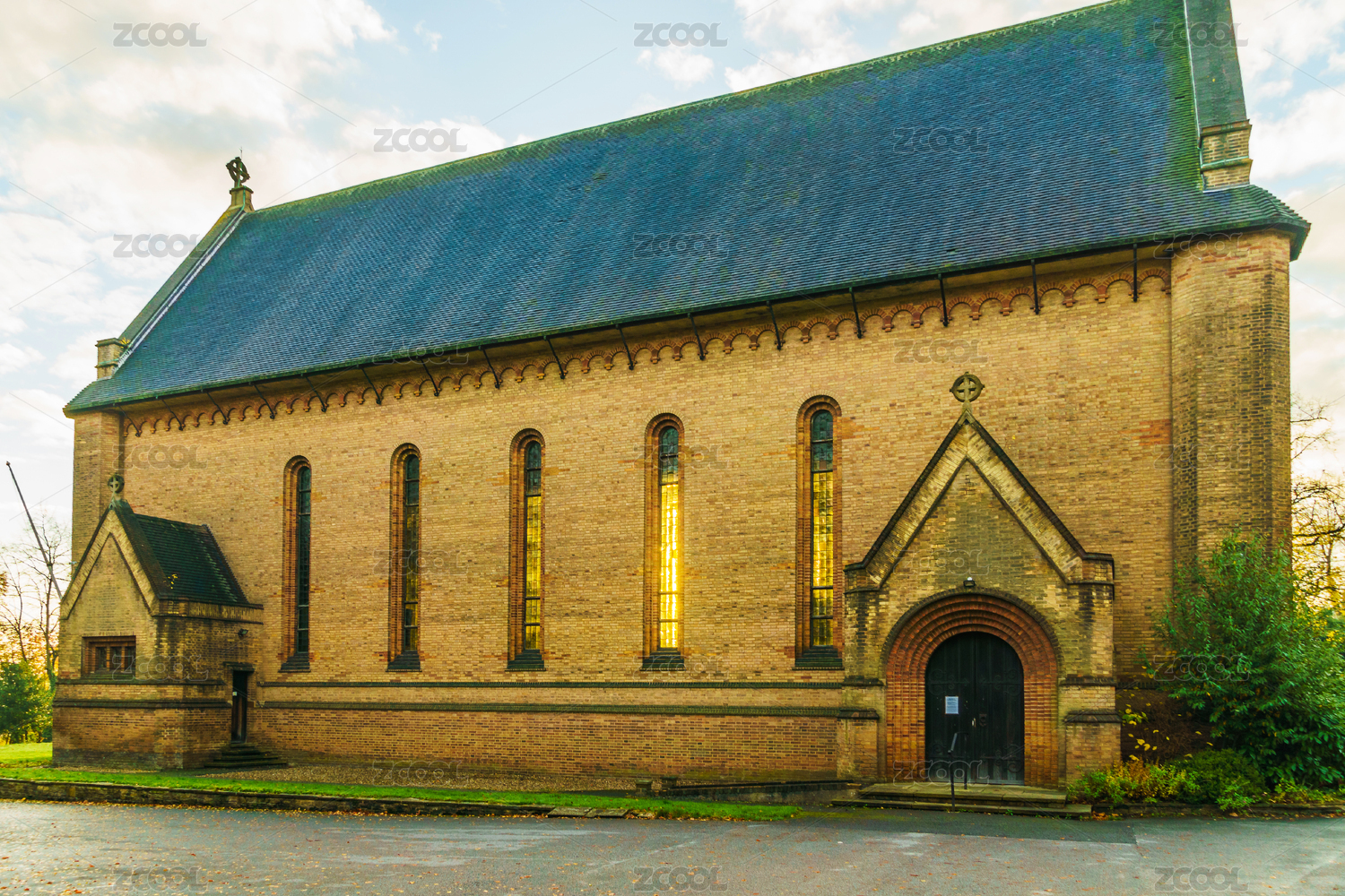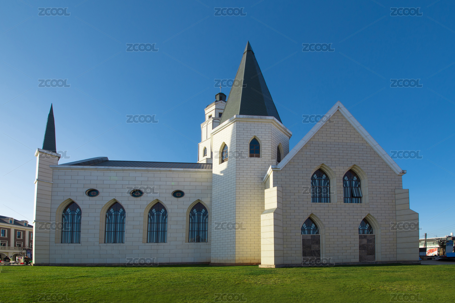 蓝天,草坪,教堂,侧面,特写,宗教,人文,文艺