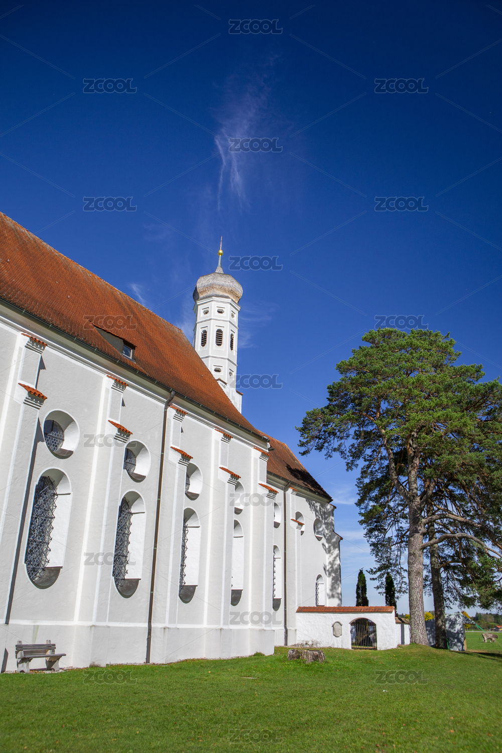 德国巴伐利亚富森阳光下的教堂局部