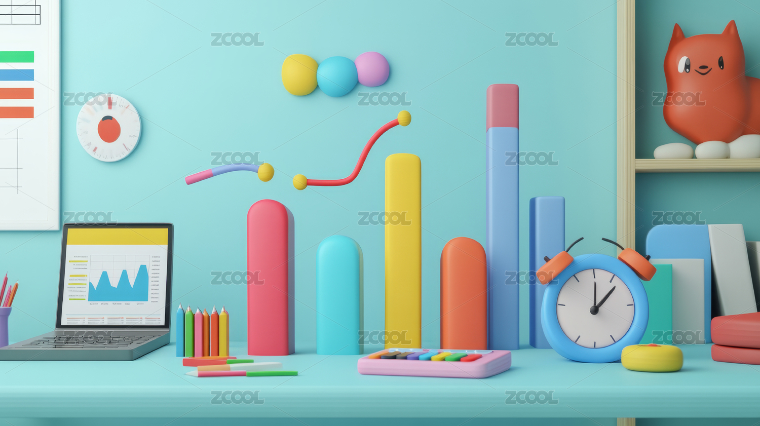 数据分析图形商业经济数据图表增长3D插图