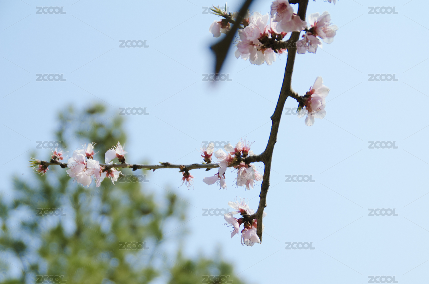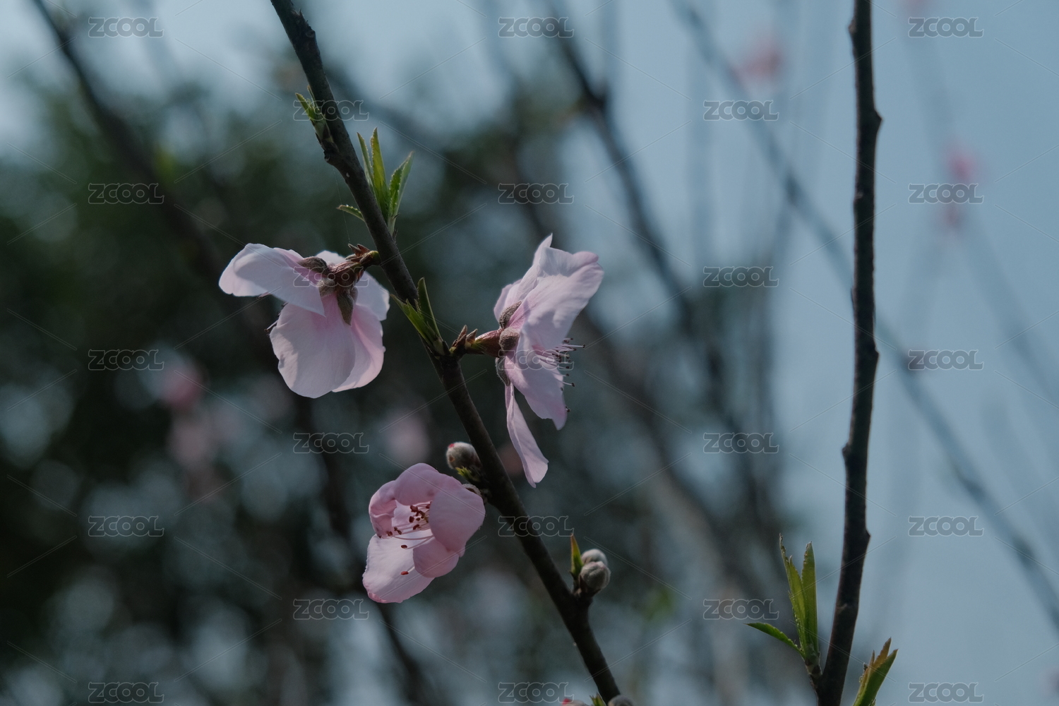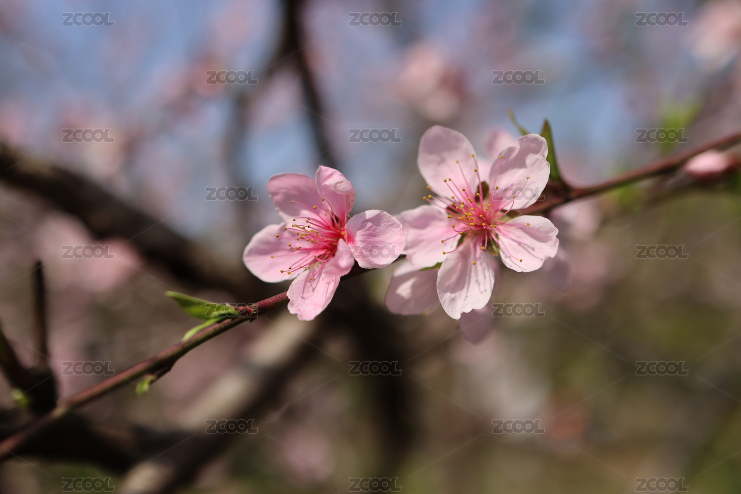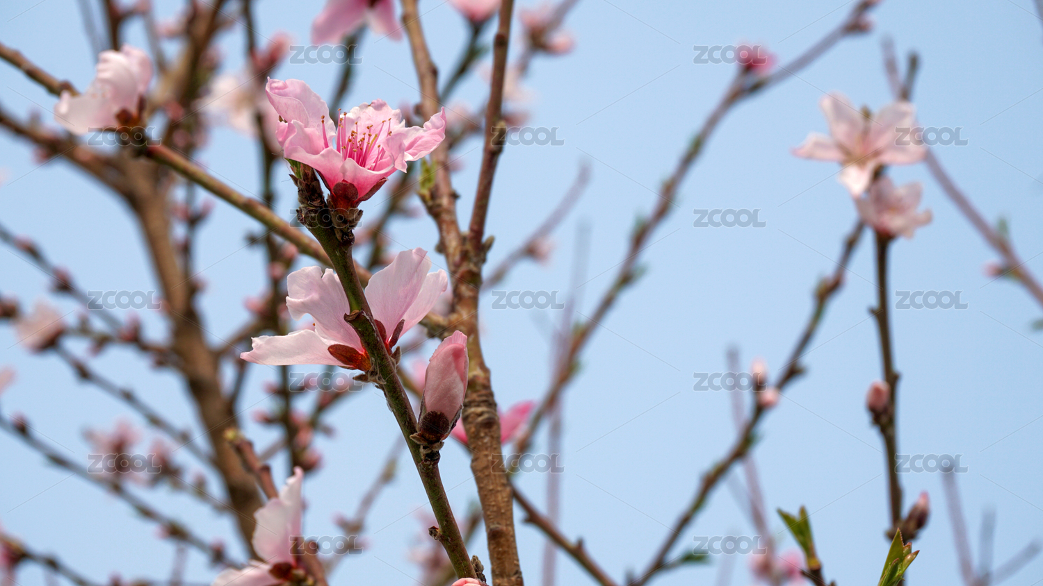 一只蜜蜂在盛开着粉红色的桃花上采花蜜