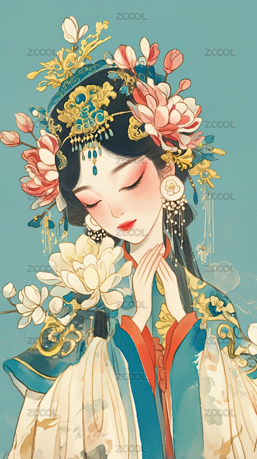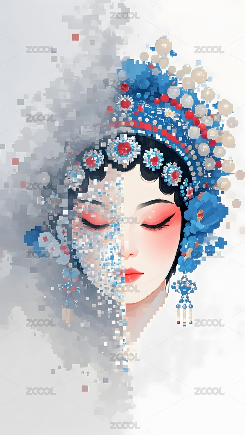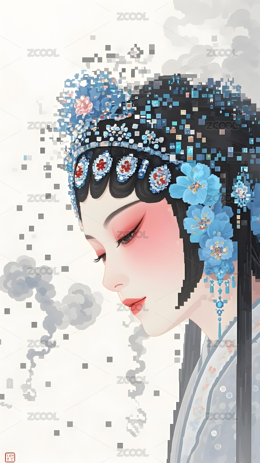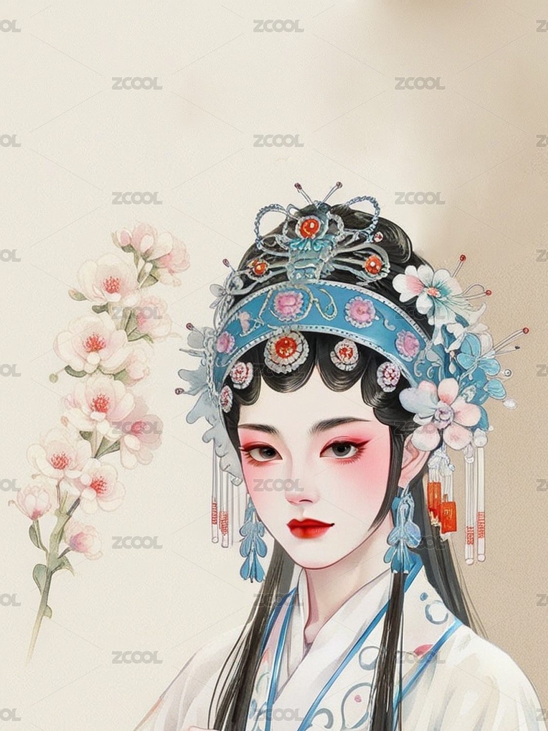 DXCZ202404,戏曲,化妆,装饰,头饰,水彩画,花旦,中国文化
