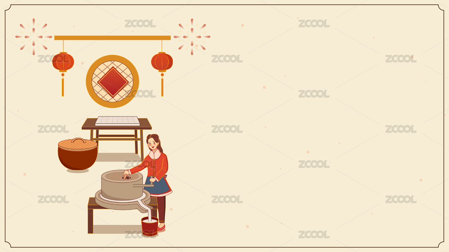 DXCZ202404,古风,美女,洗豆子,磨浆,点卤,压制,成型,做豆腐,水彩画
