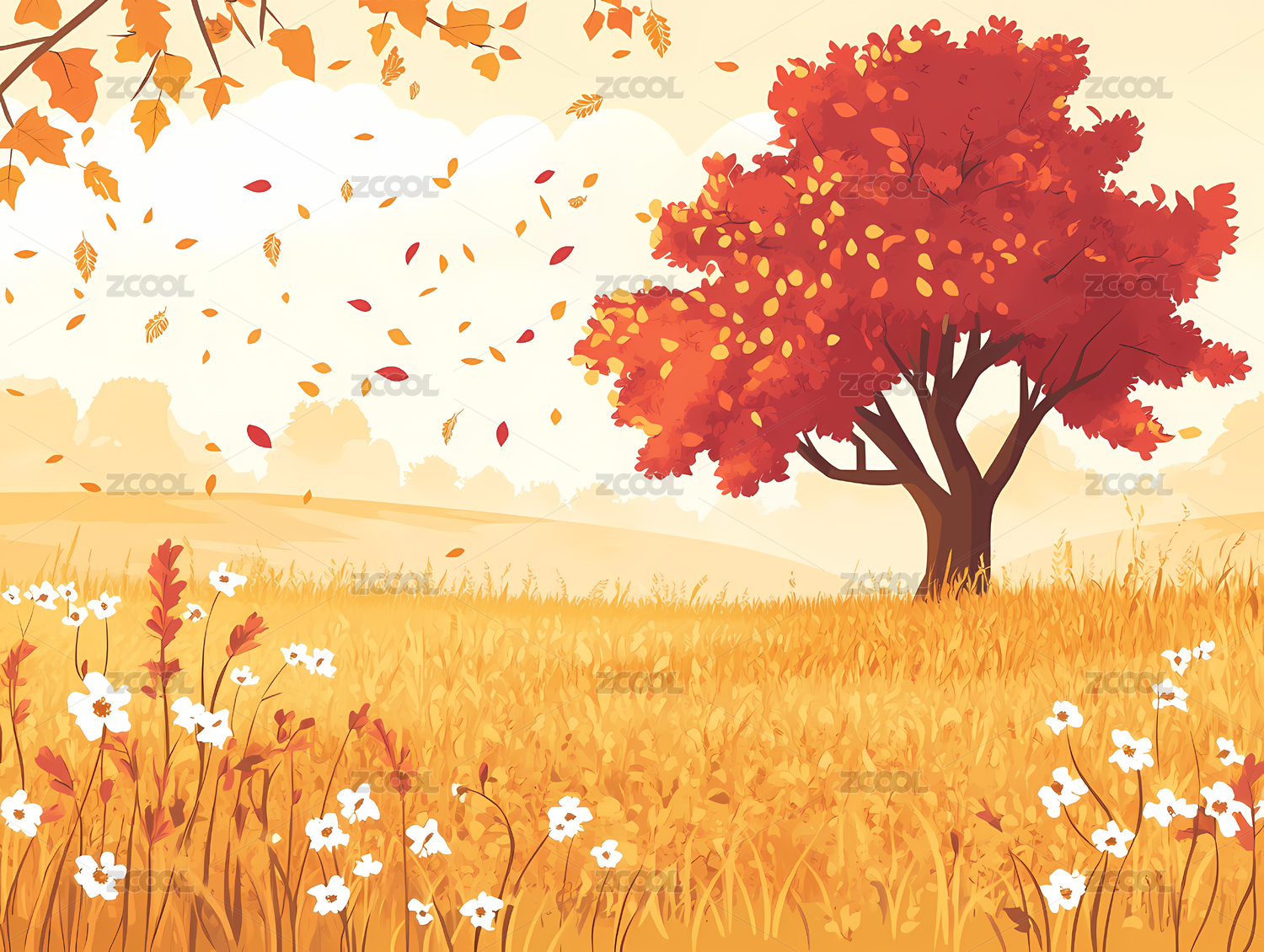 秋天秋季立秋秋分自然户外风景卡通漫画插画