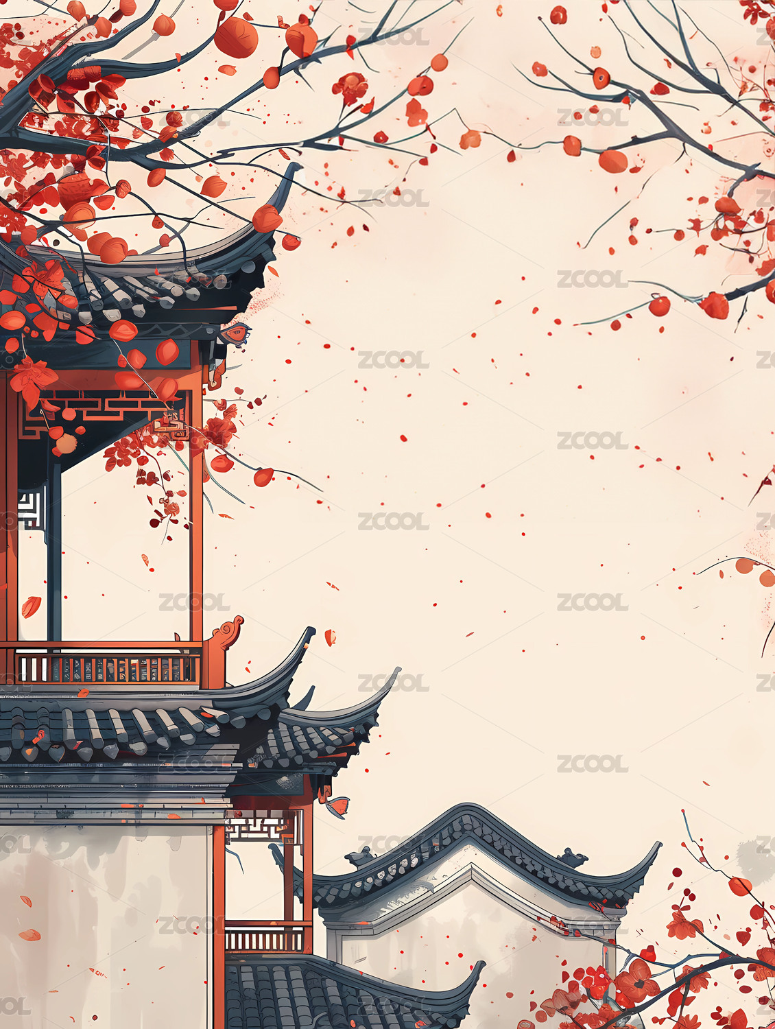 水墨画,建筑,艺术,花朵,古建筑,中国风,水彩画,绘画,壁画,传统