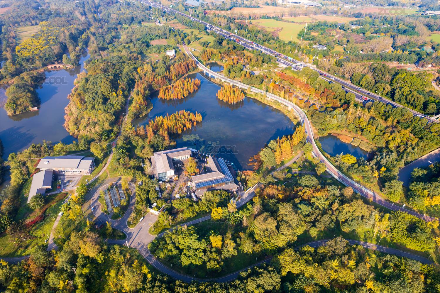 成都白鹭湾湿地公园秋季冬季水杉红叶航拍
