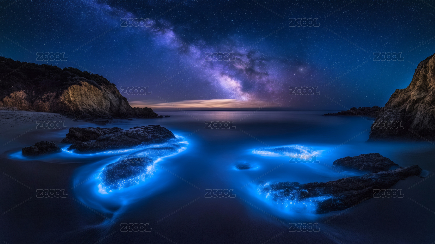 夜空下的荧光海滩
