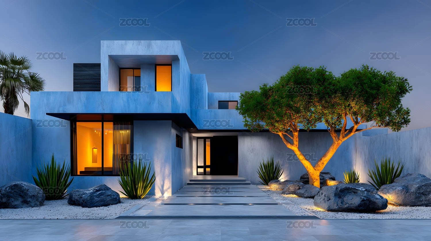 户外,棕榈树,紫色,黄昏,现代,家具,房屋,白昼,建筑,窗户