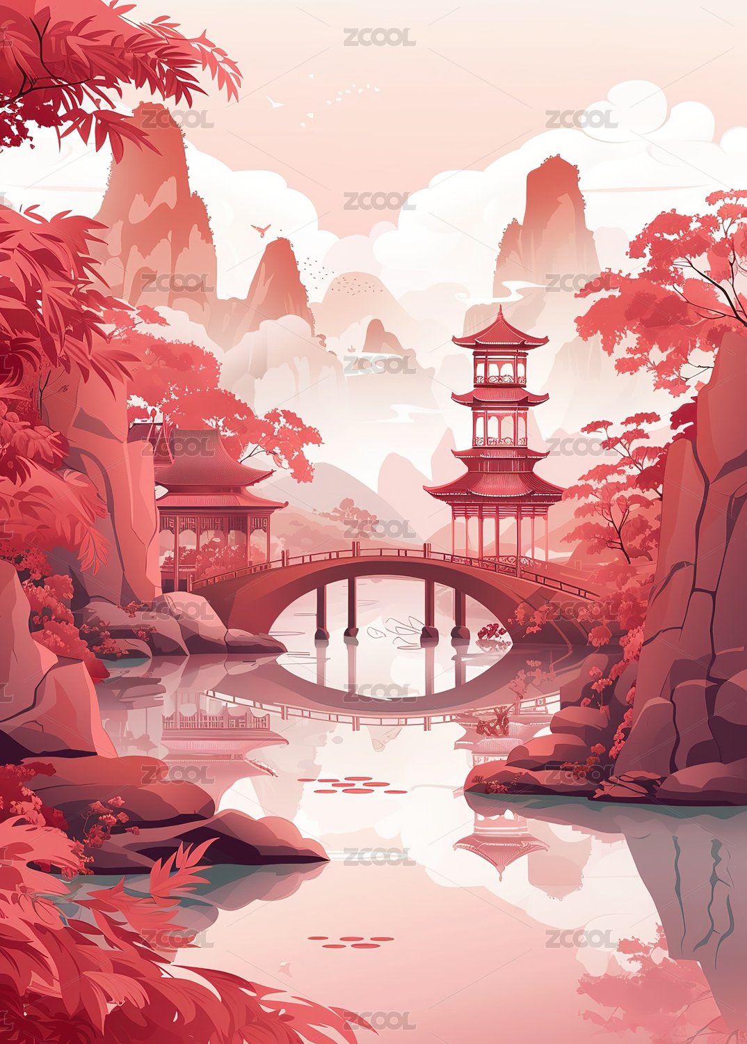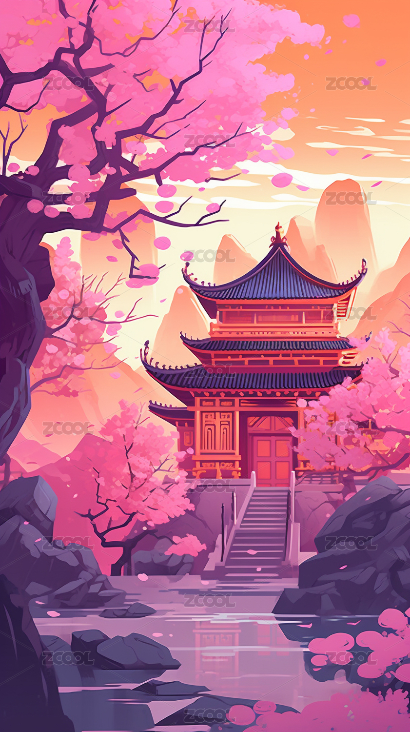 粉色系中式楼阁