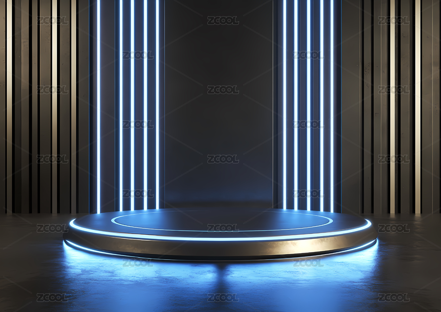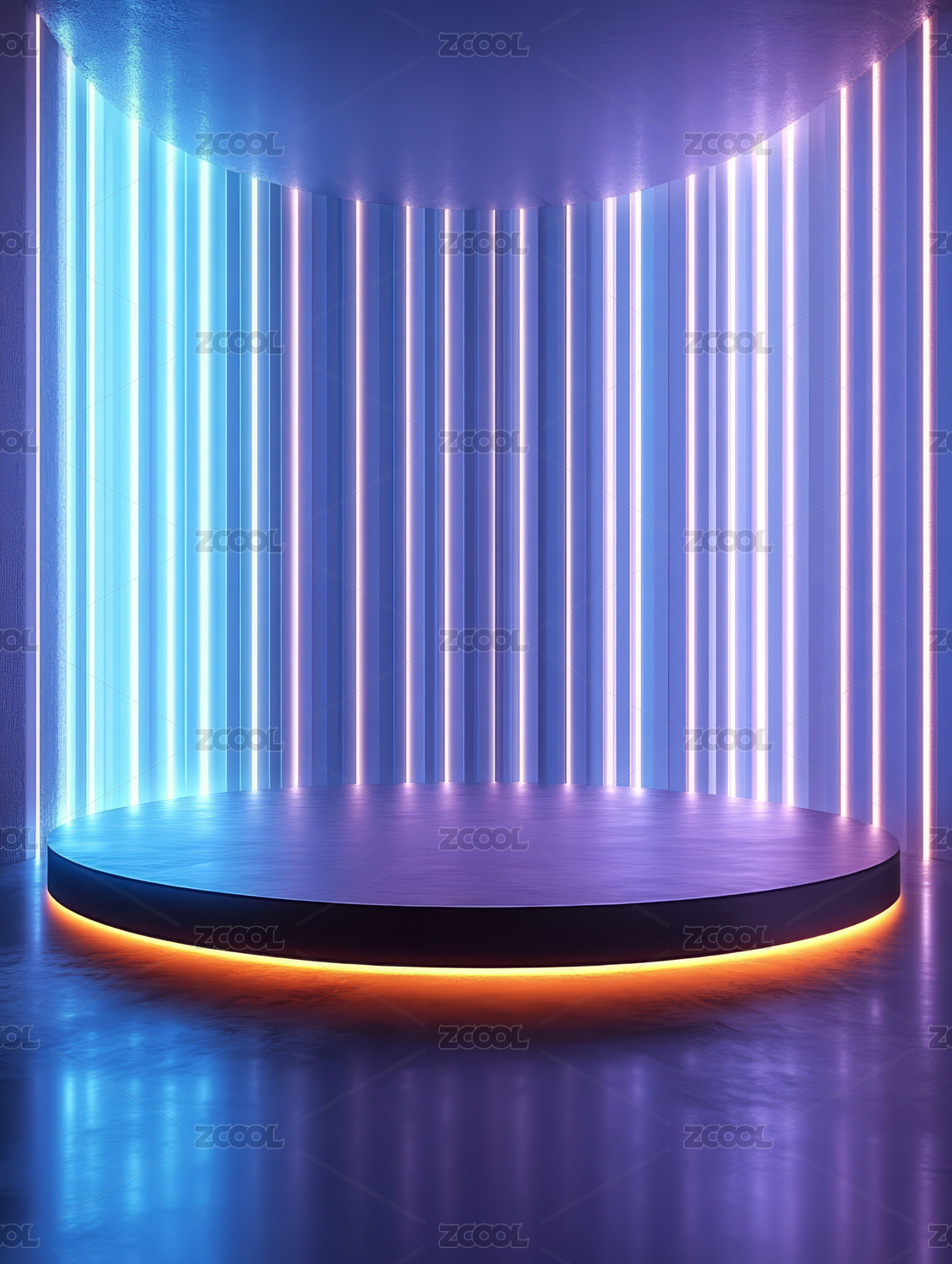 3D渲染科技风霓虹灯线条电商产品展台背景