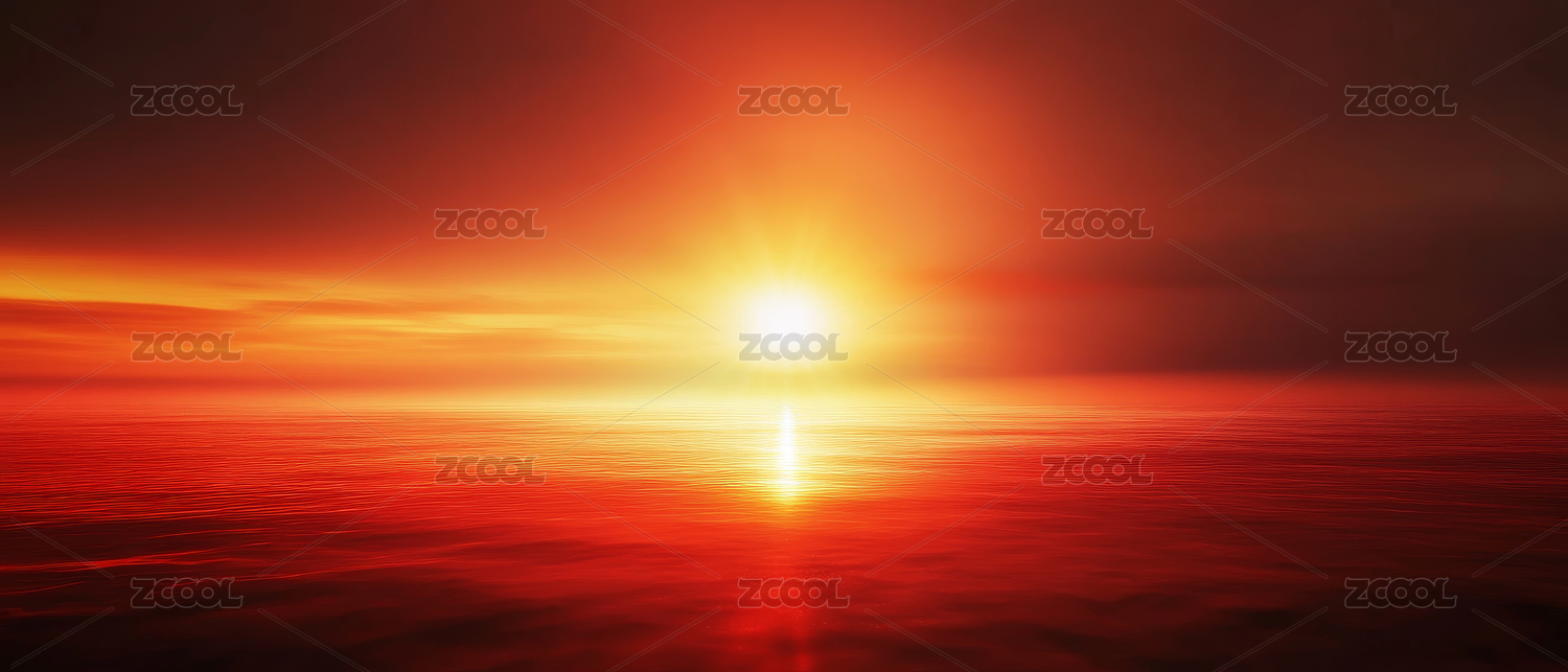 火红日出照亮大海景观