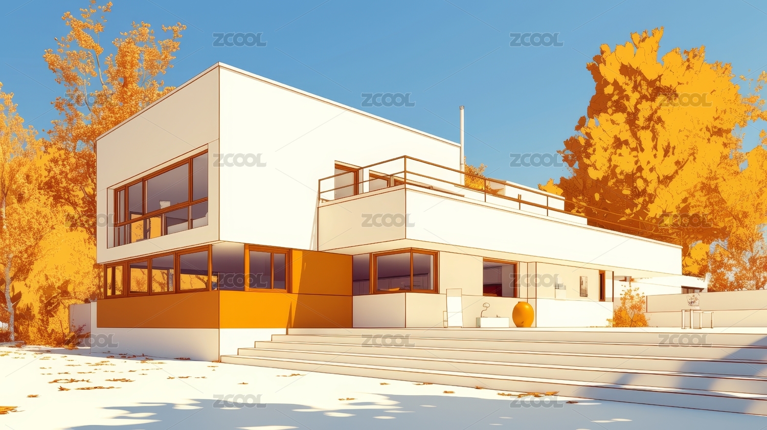 现代建筑的秋日诗意