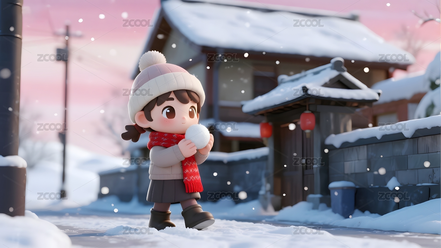 冰雪女孩快乐滑冰冬季童趣蓝白系